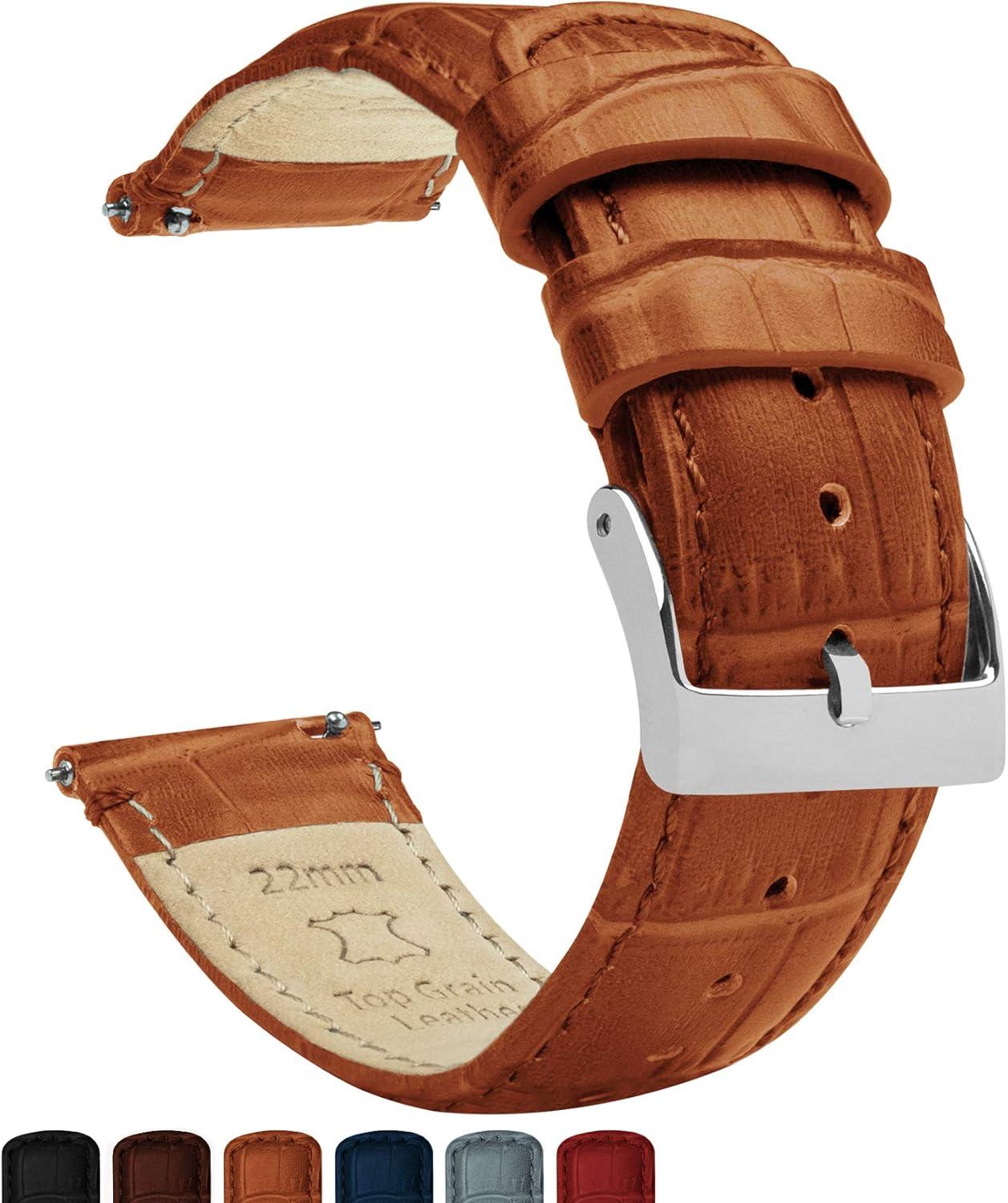 20mm Toffee Brown – Long – BARTON Alligator Grain – Quick Release Leather Watch Bands