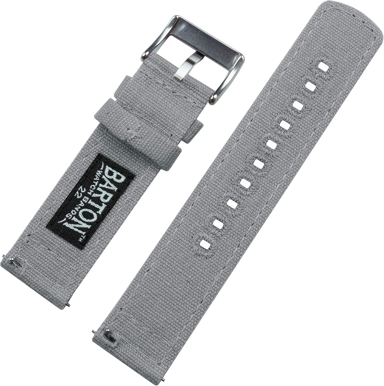 BARTON Canvas Quick Release Watch Band Straps - Choose Color & Width - 18mm, 19mm, 20mm, 21mm, 22mm, 23mm, or 24mm(Cool Grey)