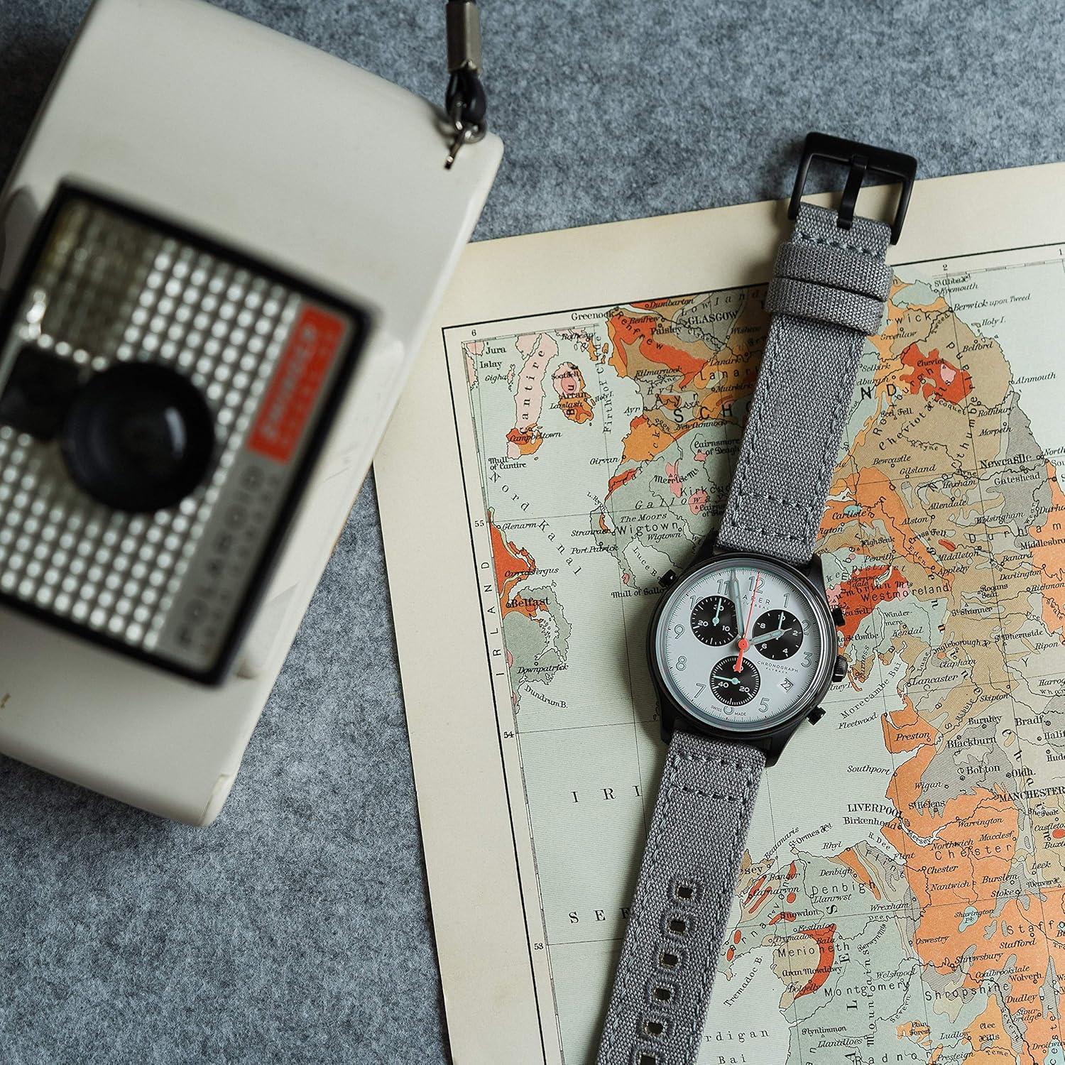 BARTON Canvas Quick Release Watch Band Straps – Choose Color & Width – 18mm, 19mm, 20mm, 21mm, 22mm, 23mm, or 24mm(Cool Grey)