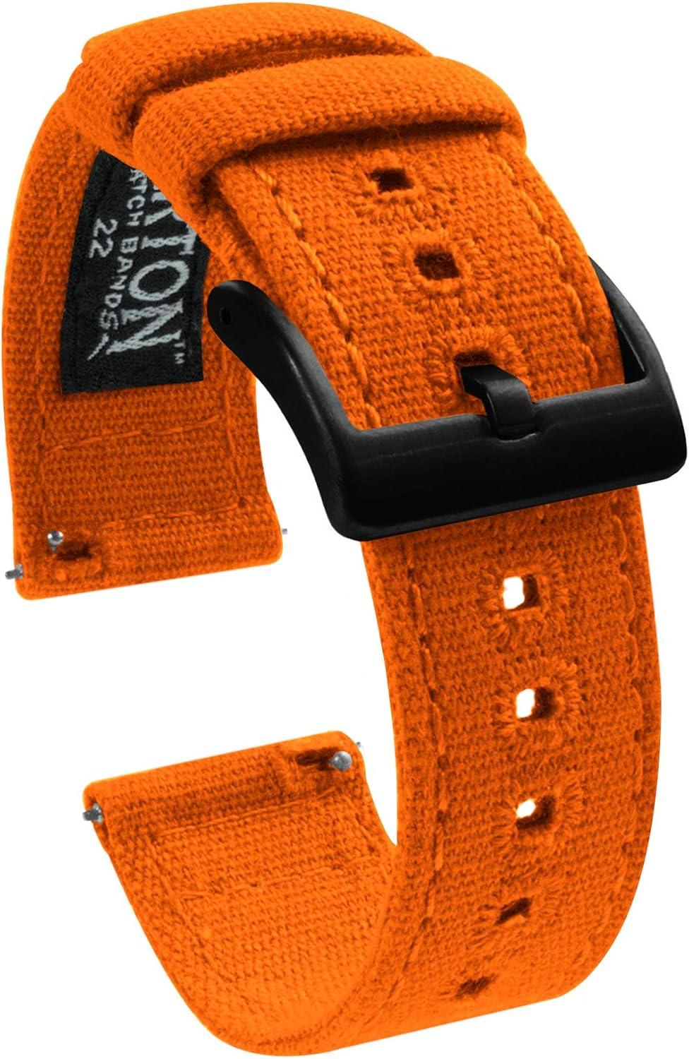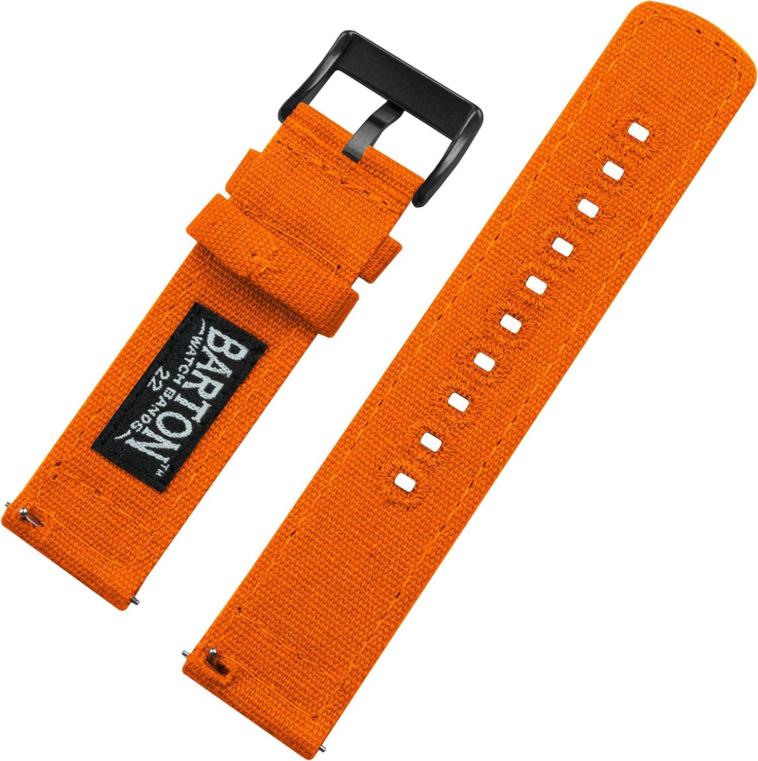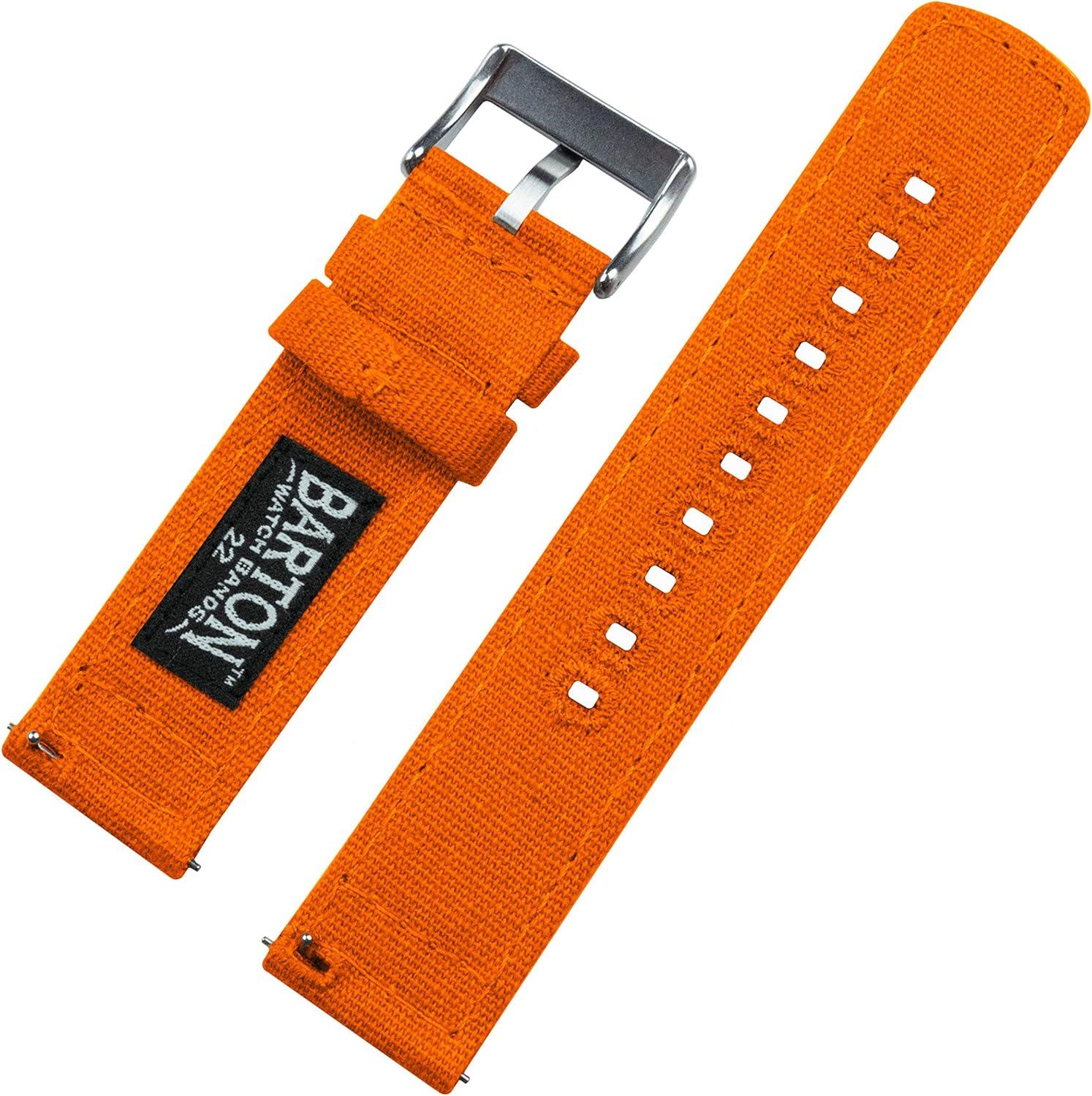 BARTON Canvas Quick Release Watch Band Straps – Choose Color & Width – 18mm, 19mm, 20mm, 21mm, 22mm, 23mm, or 24mm(Orange)