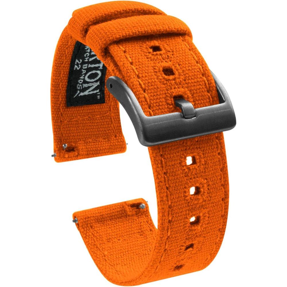 BARTON Canvas Quick Release Watch Band Straps - Choose Color & Width - 18mm, 19mm, 20mm, 21mm, 22mm, 23mm, or 24mm(Pumpkin Orange)