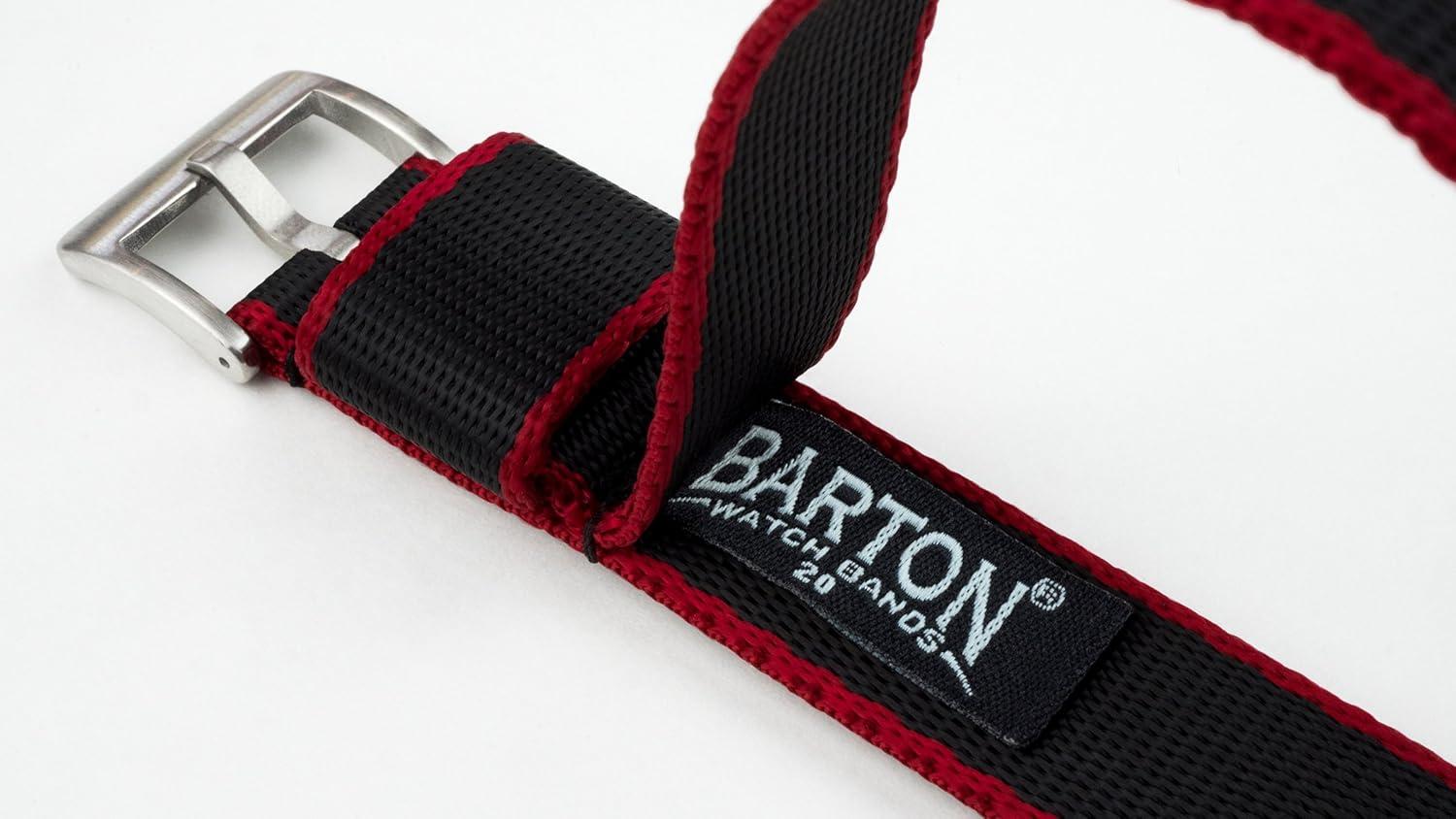 imageBARTON Elite NATO Style Watch Strap  18mm 20mm 22mm or 24mm  Seat Belt Nylon Watch BandsBlack  Crimson Red Edges