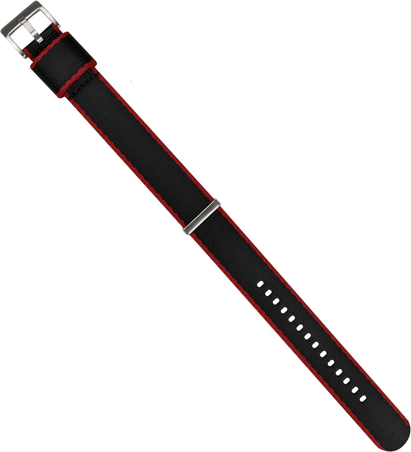 BARTON Elite NATO® Style Watch Strap – 18mm, 20mm, 22mm or 24mm – Seat Belt Nylon Watch Bands(Black / Crimson Red Edges)