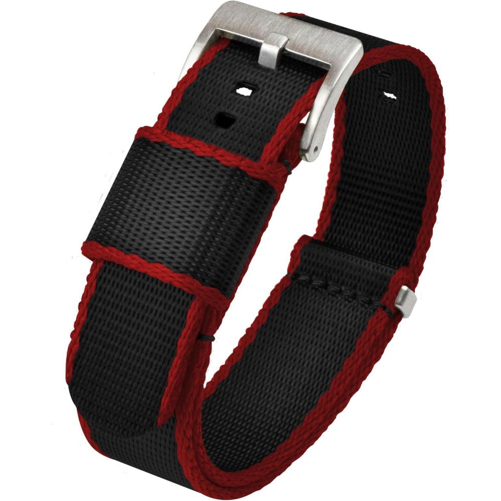 BARTON Elite NATO® Style Watch Strap - 18mm, 20mm, 22mm or 24mm - Seat Belt Nylon Watch Bands(Black / Crimson Red Edges)
