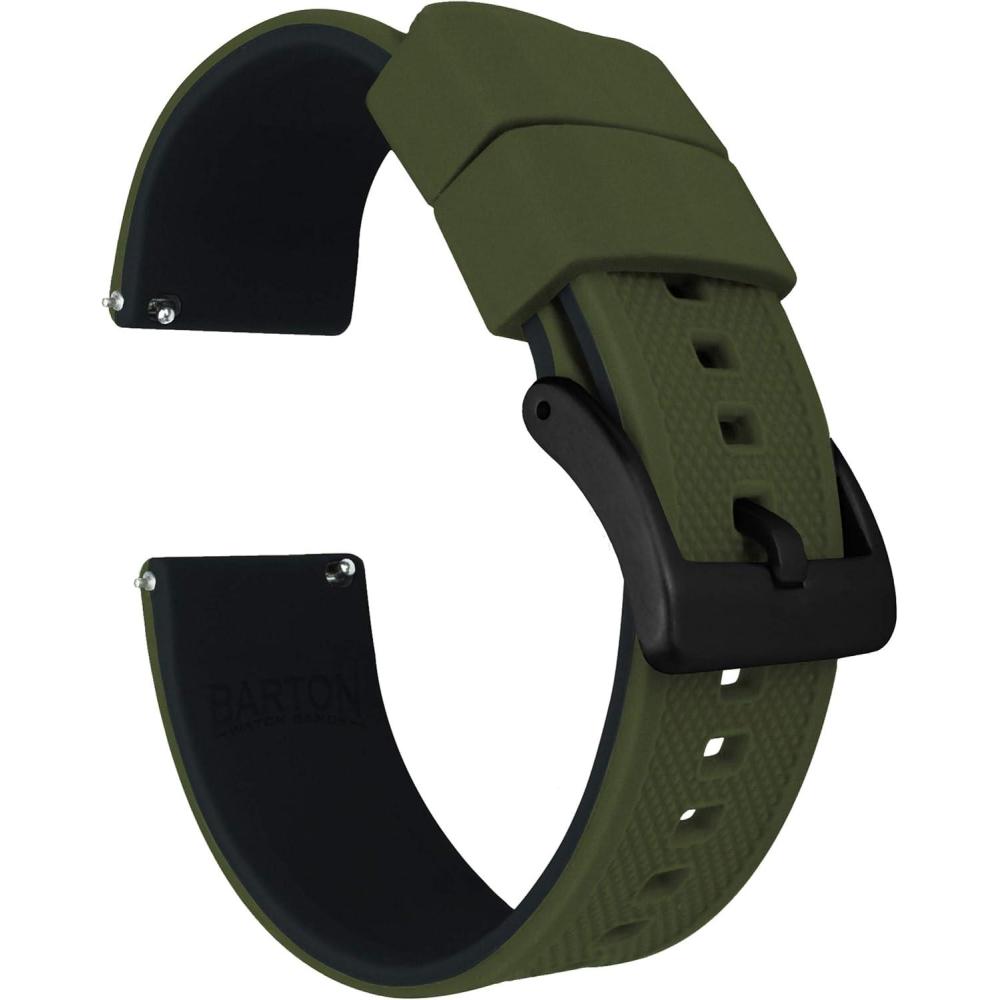 imageBARTON Elite Silicone Watch Bands  Quick Release  Choose Strap Color ampamp Buckle Color Stainless Steel Black PVD or Gunmetal Grey  18mm 20mm 22mm ampamp 24mm Watch StrapsArmy Green Top  Black Bottom  Black PVD Buckle