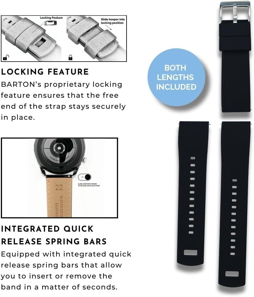 BARTON Elite Silicone Watch Bands - Quick Release - Choose Strap Color & Buckle Color (Stainless Steel, Black PVD or Gunmetal Grey) - 18mm, 20mm, 22mm & 24mm Watch Straps(Black & Black PVD Buckle)