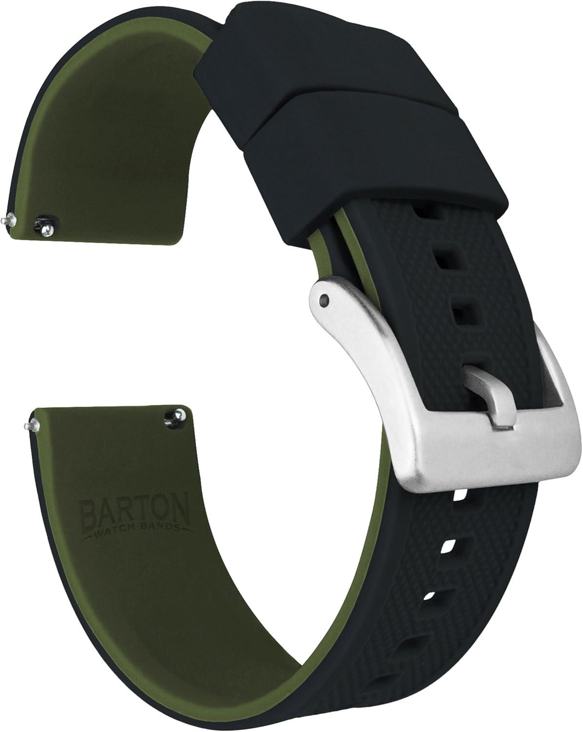 imageBARTON Elite Silicone Watch Bands  Quick Release  Choose Strap Color ampamp Buckle Color Stainless Steel Black PVD or Gunmetal Grey  18mm 20mm 22mm ampamp 24mm Watch StrapsBlack Top  Army Green Bottom