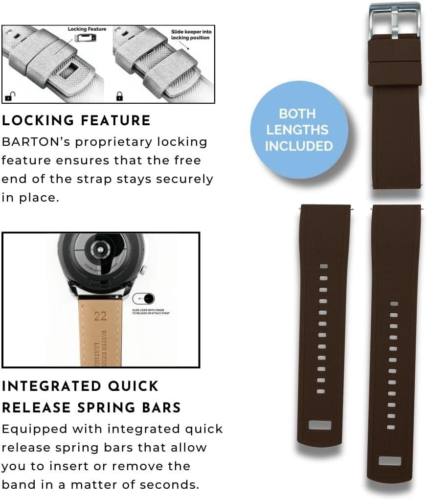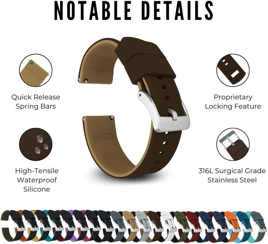 imageBARTON Elite Silicone Watch Bands  Quick Release  Choose Strap Color ampamp Buckle Color Stainless Steel Black PVD or Gunmetal Grey  18mm 20mm 22mm ampamp 24mm Watch StrapsChocolate Brown Top  Khaki Bottom  Black PVD Buckle