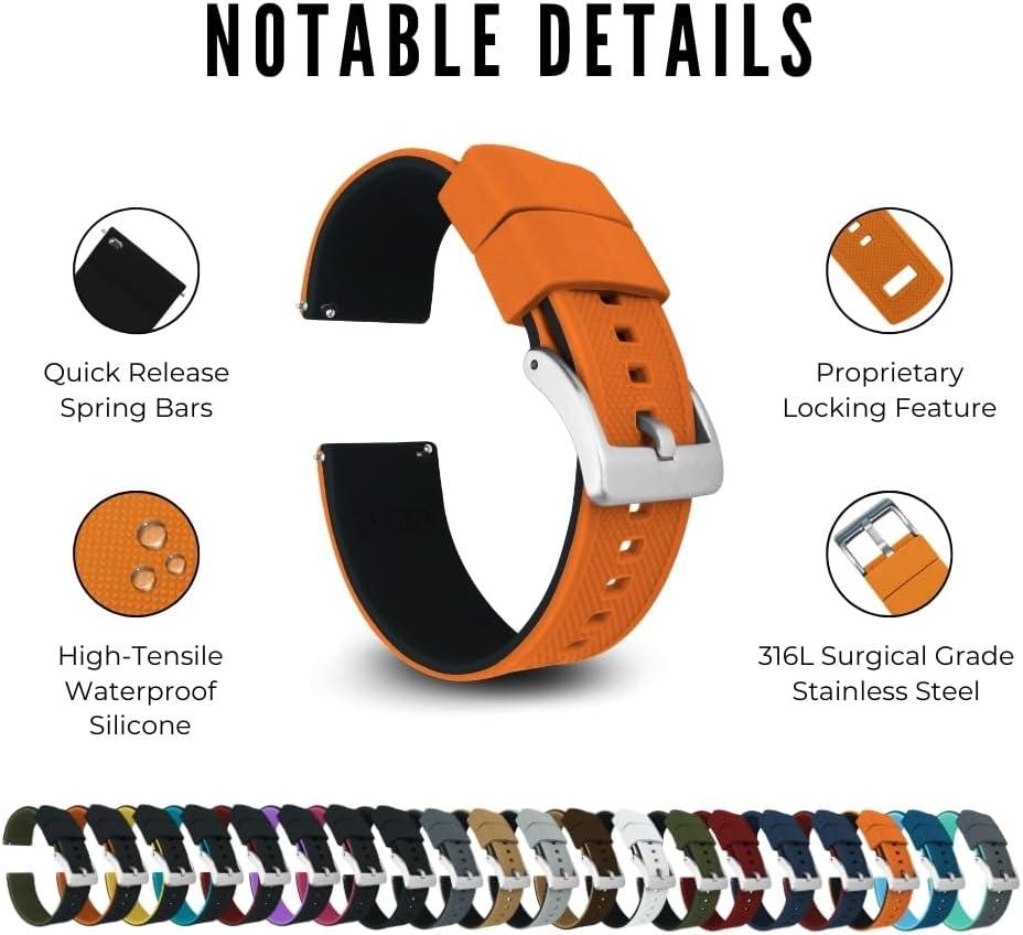 imageBARTON Elite Silicone Watch Bands  Quick Release  Choose Strap Color ampamp Buckle Color Stainless Steel Black PVD or Gunmetal Grey  18mm 20mm 22mm ampamp 24mm Watch StrapsPumpkin Orange Top  Black Bottom  Gunmetal Grey