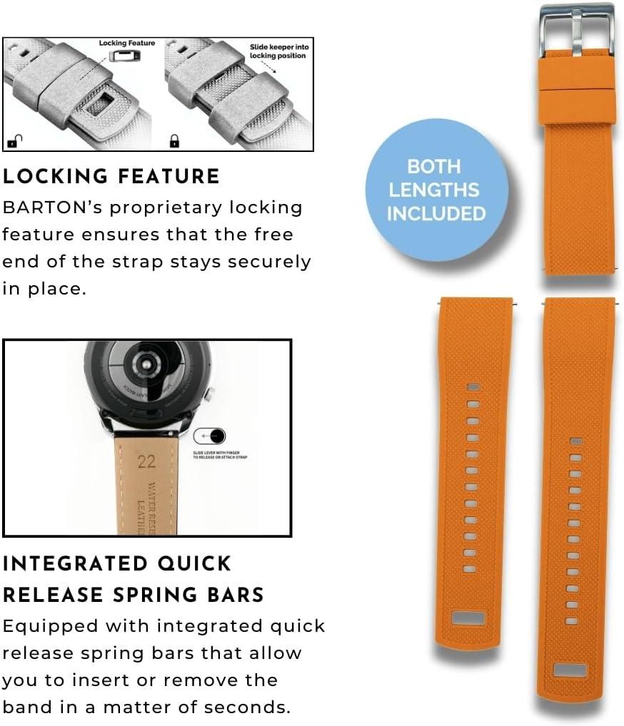 imageBARTON Elite Silicone Watch Bands  Quick Release  Choose Strap Color ampamp Buckle Color Stainless Steel Black PVD or Gunmetal Grey  18mm 20mm 22mm ampamp 24mm Watch StrapsPumpkin Orange Top  Black Bottom  Black PVD Buckle