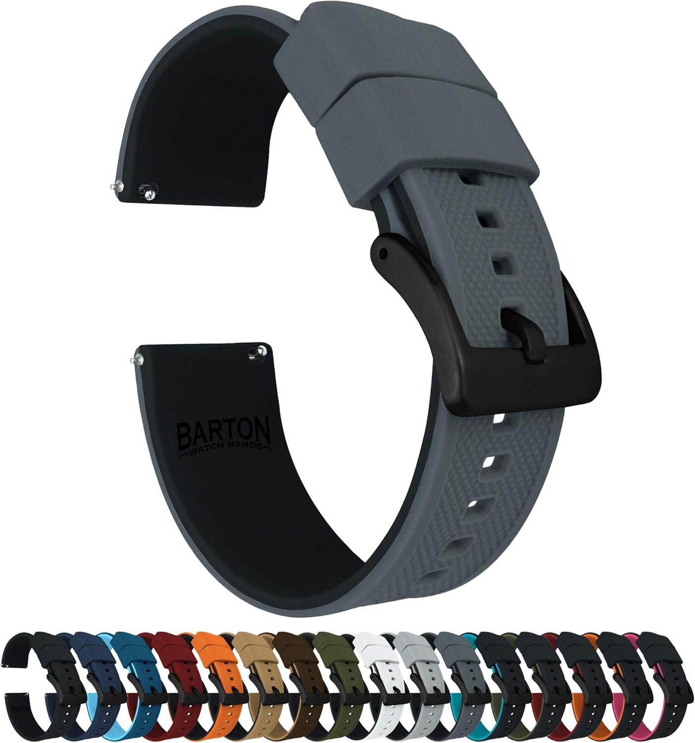 imageBARTON Elite Silicone Watch Bands  Quick Release  Choose Strap Color ampamp Buckle Color Stainless Steel Black PVD or Gunmetal Grey  18mm 20mm 22mm ampamp 24mm Watch StrapsSmoke Grey Top  Black Bottom