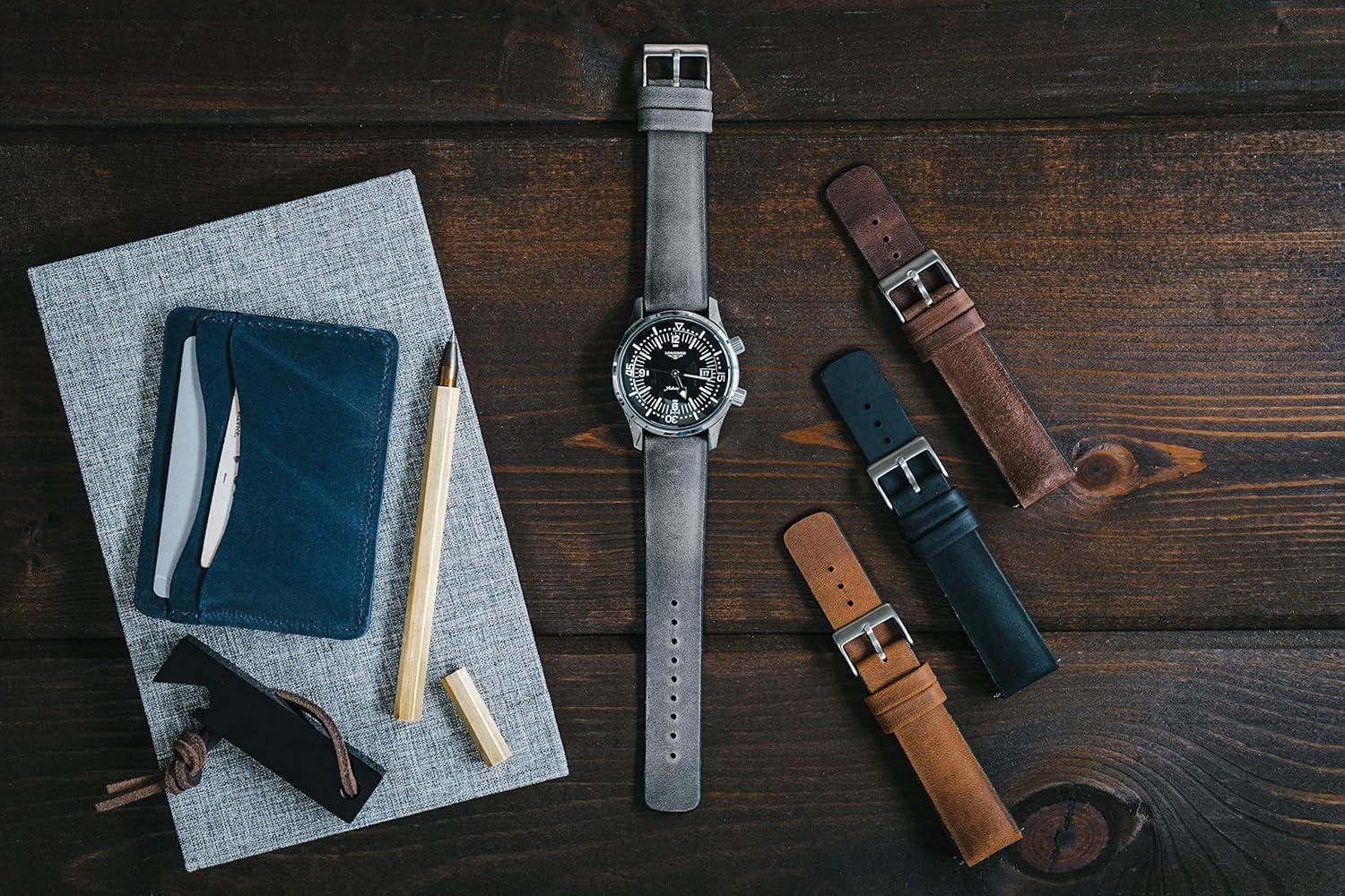 Our top-grain leather has been waxed, polished, and softened. This unique treatment allows the natural characteristics of the leather to shine through. Be aware that a natural patina will develop over time, giving this watch band a worn-in, timeless, and rustic feel. These simple imperfections add a rich texture to your timepiece!