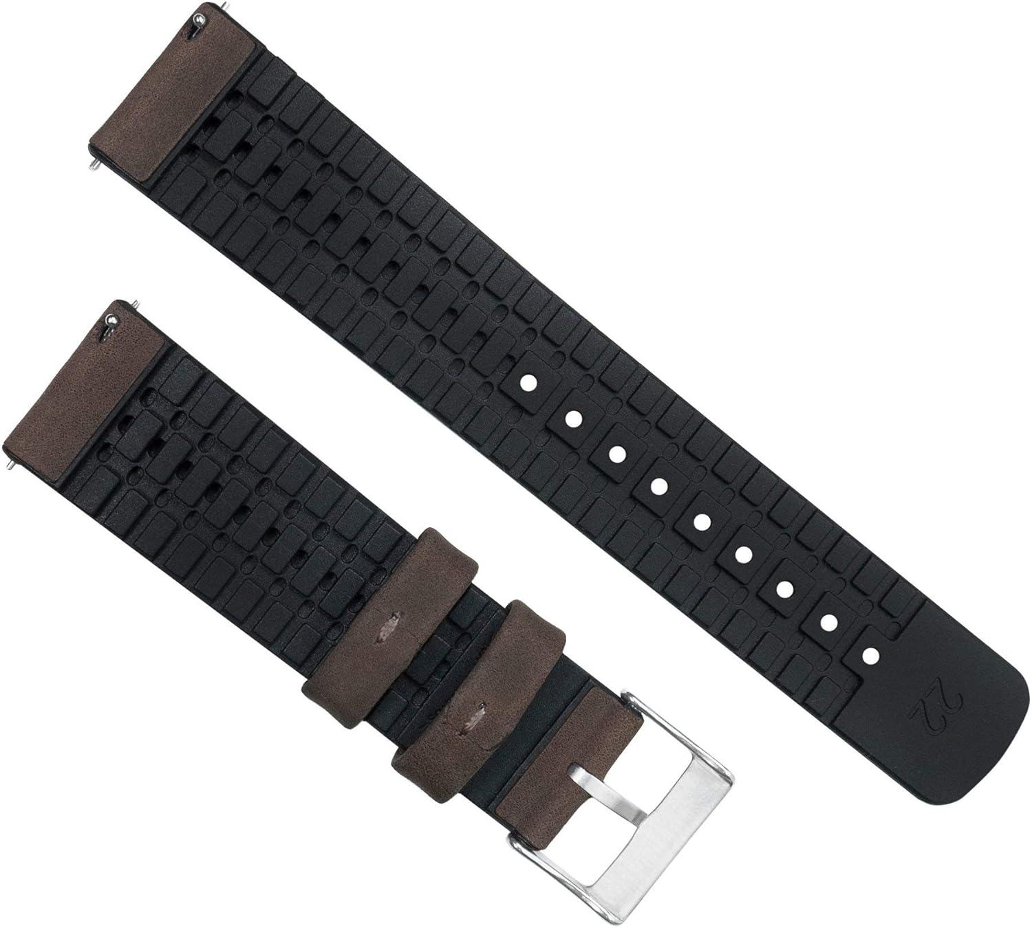 imageBARTON Leather and Rubber Hybrid Straps with Integrated Quick Release Spring Bars  316L Stainless Steel  Choose Color  18mm 20mm ampamp 22mm Watch BandsOak