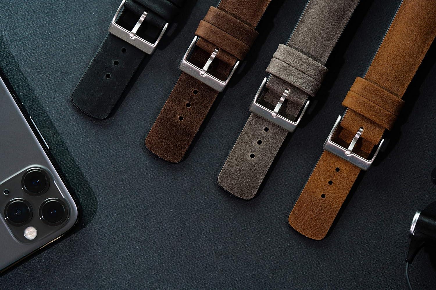 BARTON Leather and Rubber Hybrid Straps with Integrated Quick Release Spring Bars – 316L Stainless Steel – Choose Color – 18mm, 20mm & 22mm Watch Bands(Smoke & Black Buckle)
