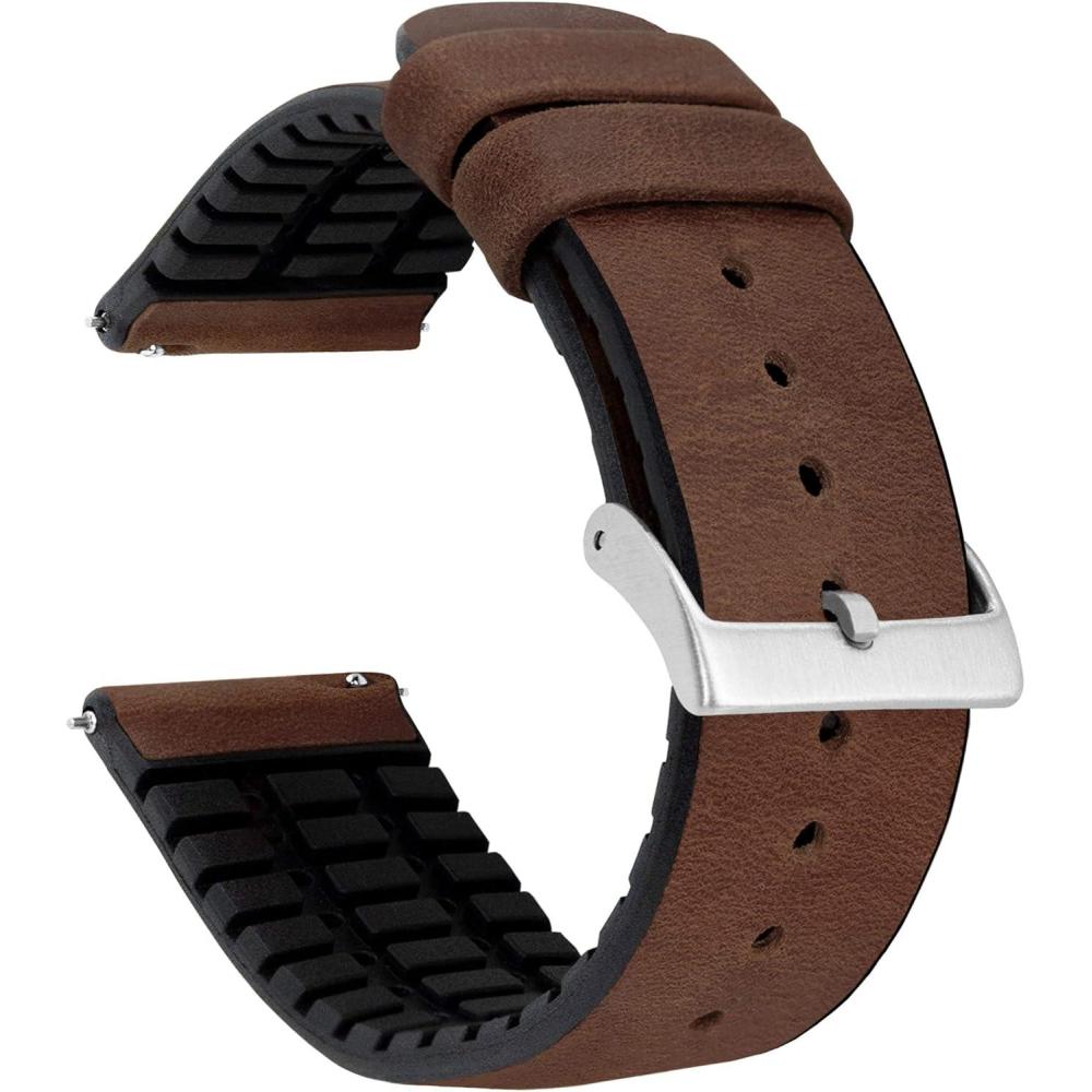BARTON Leather and Rubber Hybrid Straps with Integrated Quick Release Spring Bars - 316L Stainless Steel - Choose Color - 18mm, 20mm & 22mm Watch Bands(Walnut)