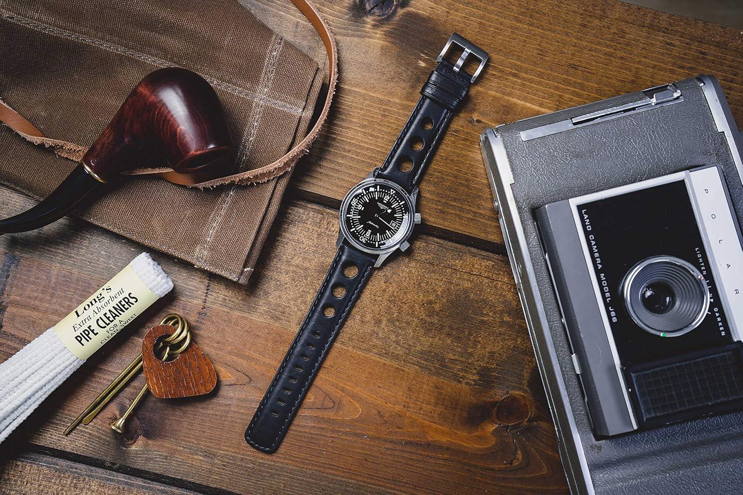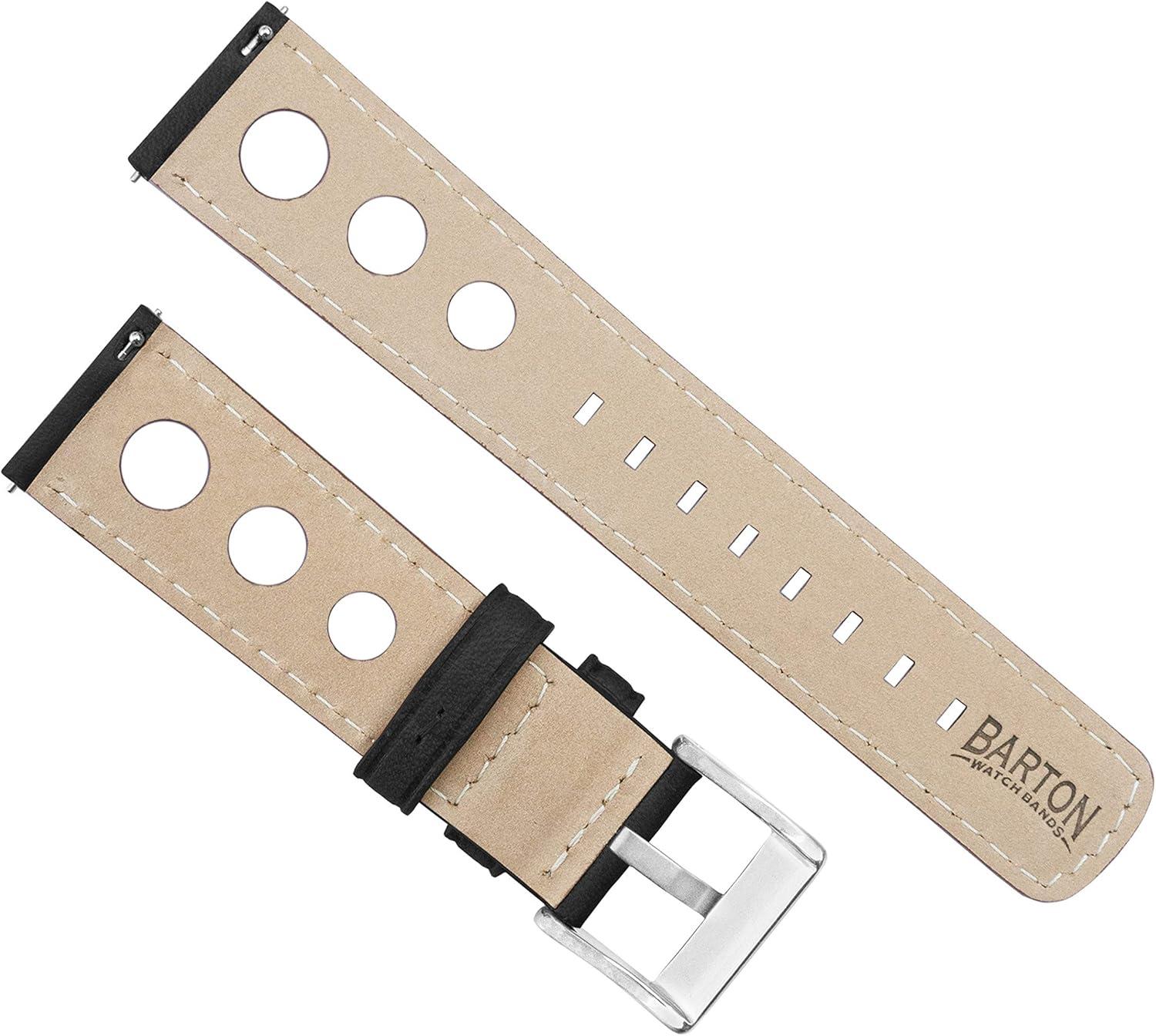Barton Racing & Rally Horween Leather Straps with Integrated Quick Release Spring Bars - Standard Length fits Wrists 5" to 8"-18mm, 19mm, 20mm, 21mm, 22mm, 23mm & 24mm Watch Bands - Choose Strap Color & Width(Black (Rally Style))