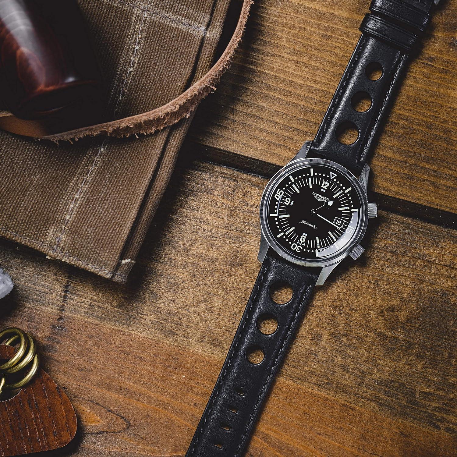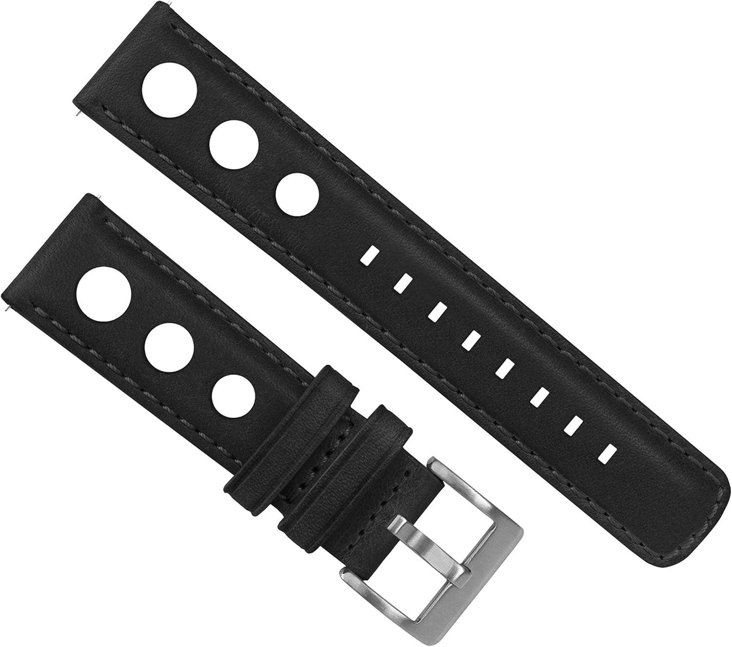 Barton Racing & Rally Horween Leather Straps with Integrated Quick Release Spring Bars – Standard Length fits Wrists 5″ to 8″-18mm, 19mm, 20mm, 21mm, 22mm, 23mm & 24mm Watch Bands – Choose Strap Color & Width(Black (Rally Style))