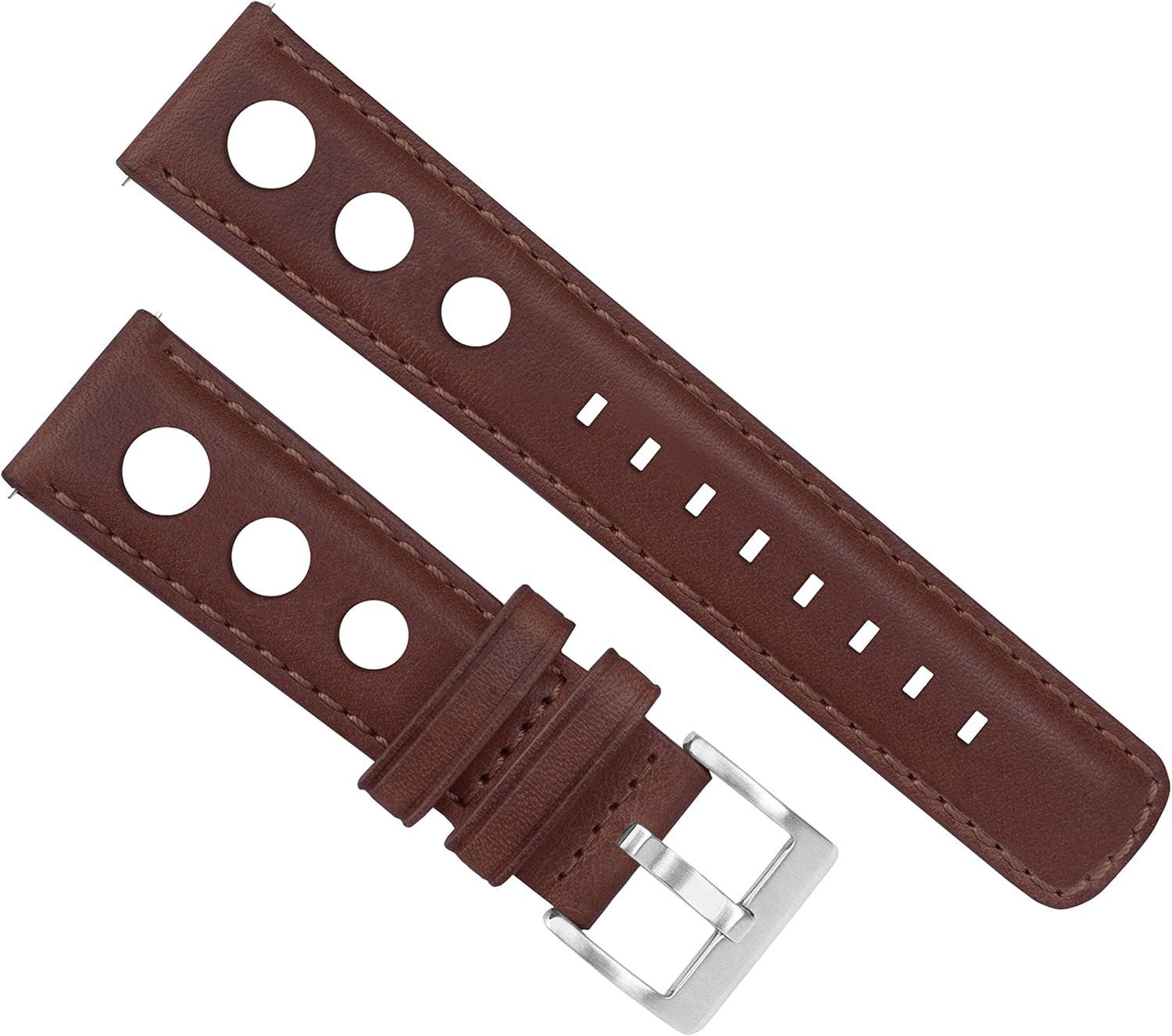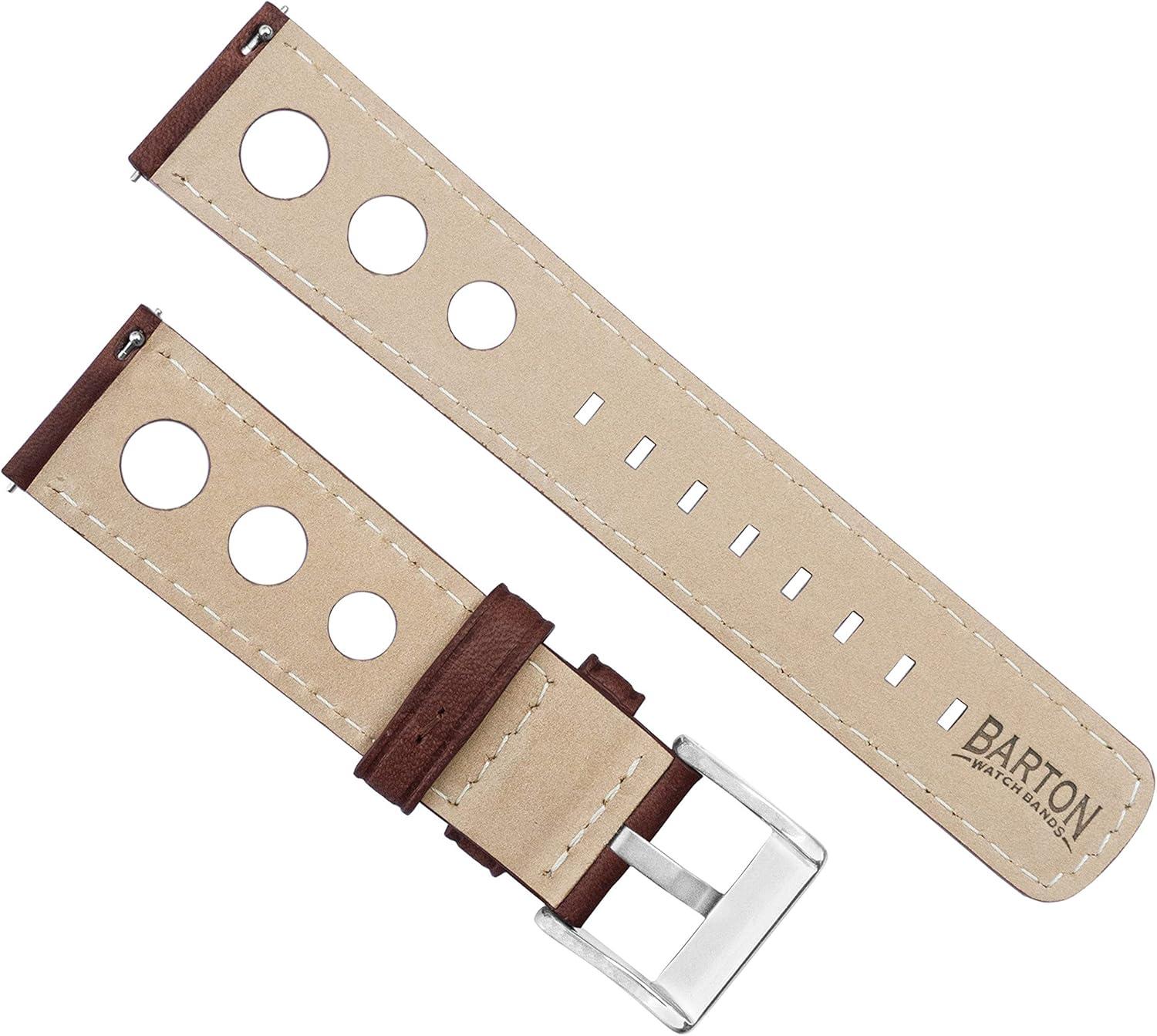 Barton Racing & Rally Horween Leather Straps with Integrated Quick Release Spring Bars - Standard Length fits Wrists 5" to 8"-18mm, 19mm, 20mm, 21mm, 22mm, 23mm & 24mm Watch Bands - Choose Strap Color & Width(Chocolate (Rally Style))