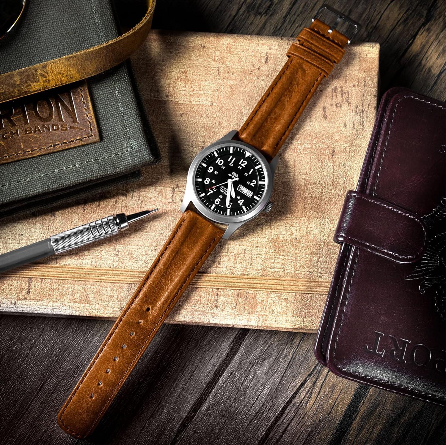 imageBarton Racing amp Rally Horween Leather Straps with Integrated Quick Release Spring Bars  Standard Length fits Wrists 5 to 818mm 19mm 20mm 21mm 22mm 23mm amp 24mm Watch Bands  Choose Strap Color amp WidthCaramel Brown Classic Style  Black Buckle