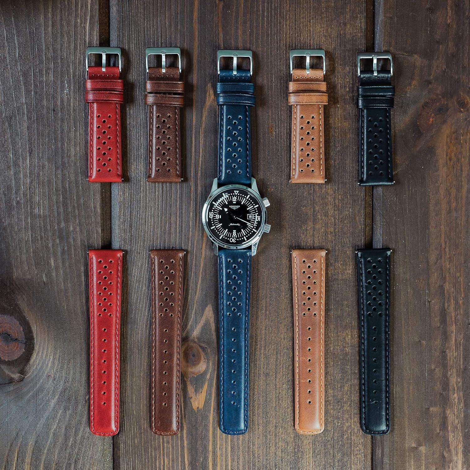 imageBarton Racing amp Rally Horween Leather Straps with Integrated Quick Release Spring Bars  Standard Length fits Wrists 5 to 818mm 19mm 20mm 21mm 22mm 23mm amp 24mm Watch Bands  Choose Strap Color amp WidthCrimson Red Racing Style