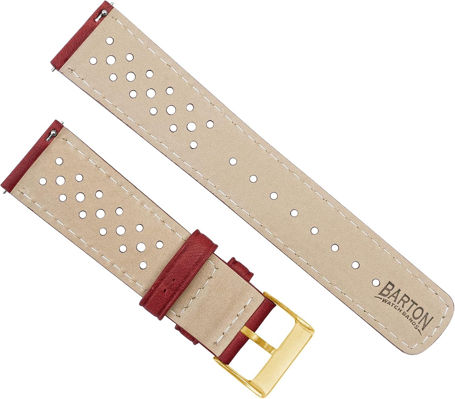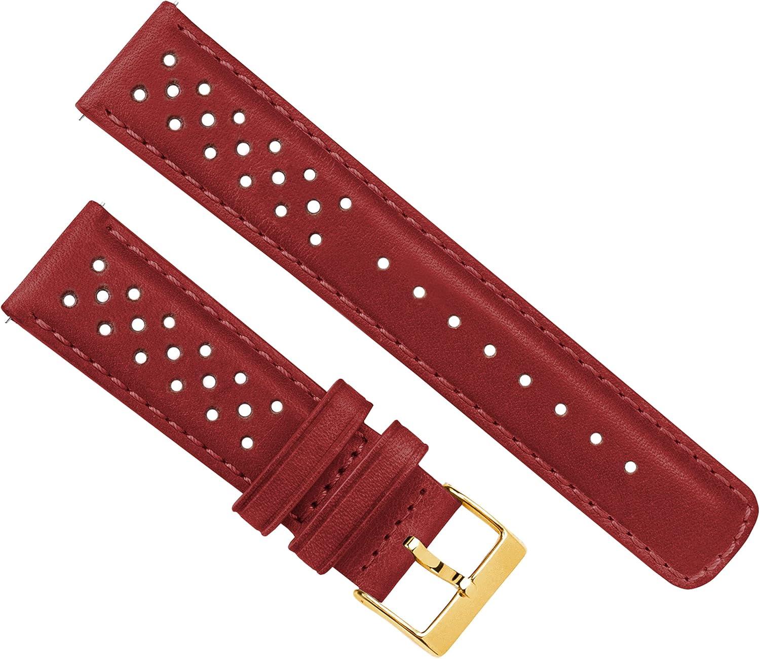imageBarton Racing amp Rally Horween Leather Straps with Integrated Quick Release Spring Bars  Standard Length fits Wrists 5 to 818mm 19mm 20mm 21mm 22mm 23mm amp 24mm Watch Bands  Choose Strap Color amp WidthCrimson Red Racing Style  Gold Buckle