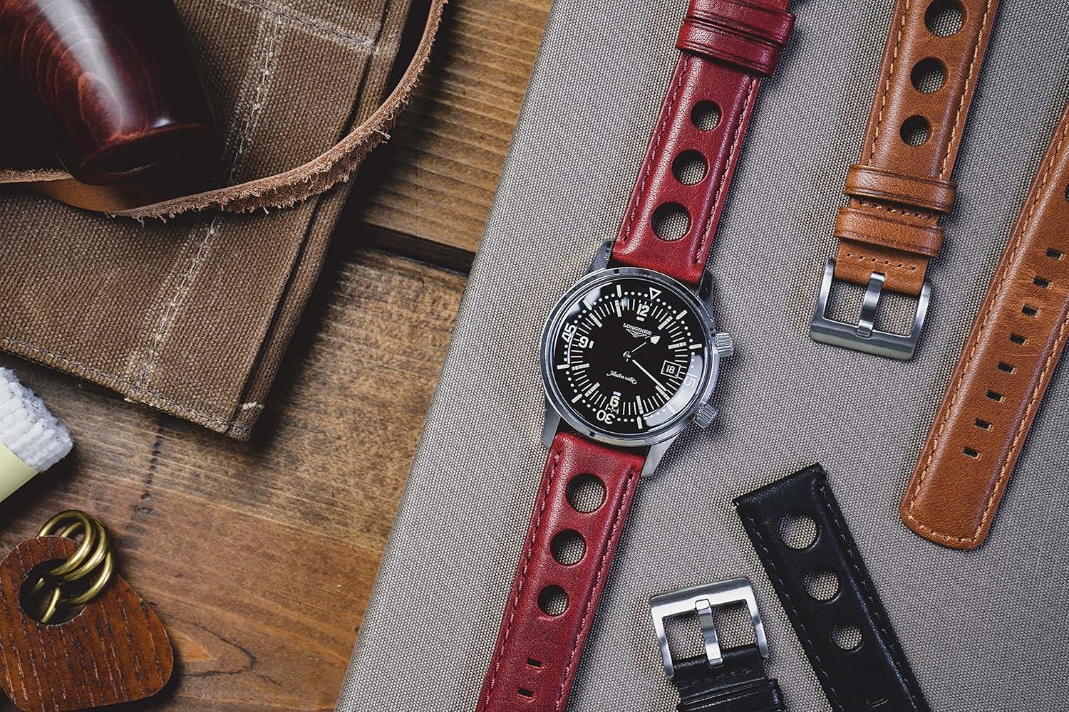 imageBarton Racing amp Rally Horween Leather Straps with Integrated Quick Release Spring Bars  Standard Length fits Wrists 5 to 818mm 19mm 20mm 21mm 22mm 23mm amp 24mm Watch Bands  Choose Strap Color amp WidthCrimson Red Rally Style