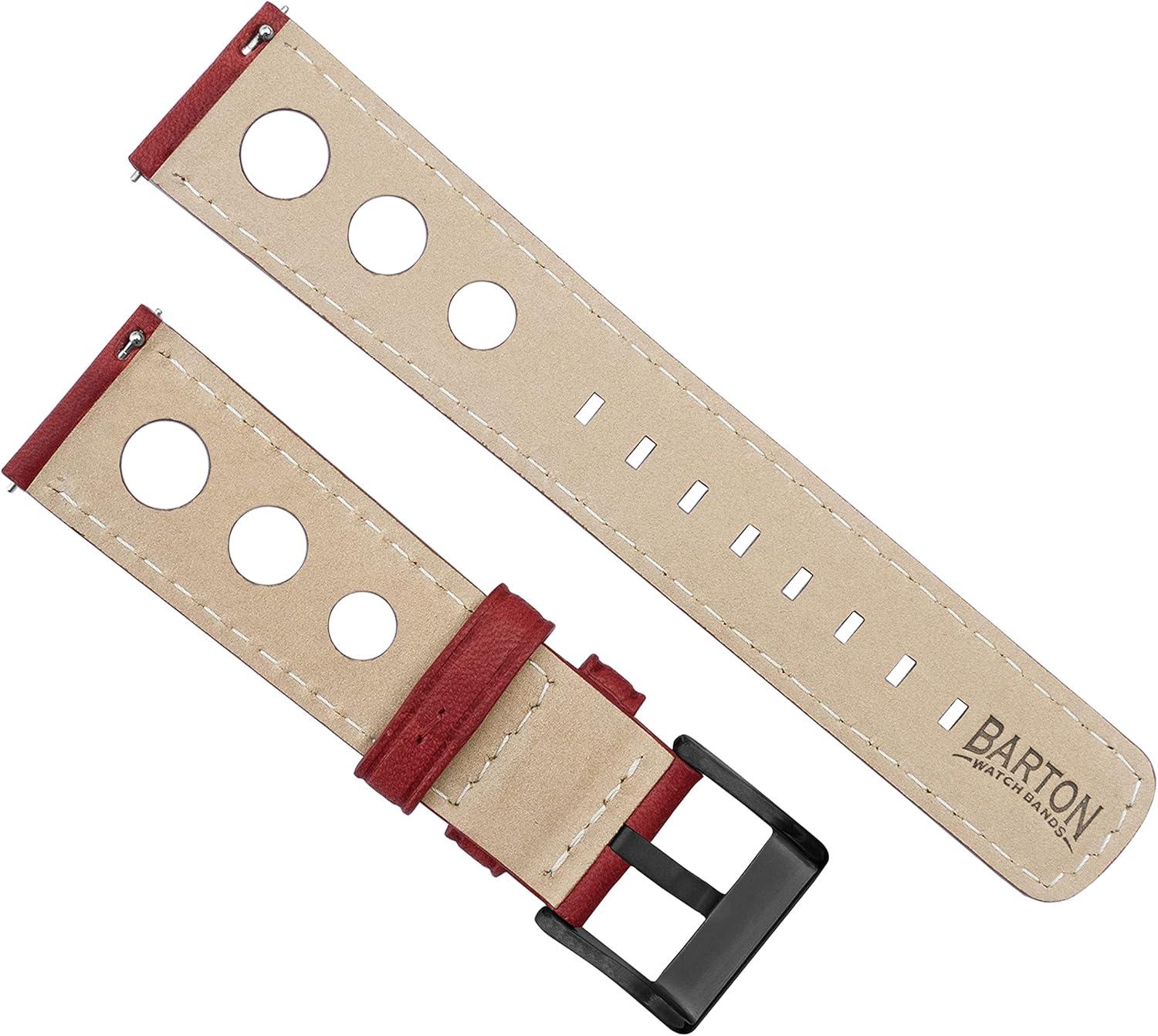 imageBarton Racing amp Rally Horween Leather Straps with Integrated Quick Release Spring Bars  Standard Length fits Wrists 5 to 818mm 19mm 20mm 21mm 22mm 23mm amp 24mm Watch Bands  Choose Strap Color amp WidthCrimson Red Rally Style  Black Buckle