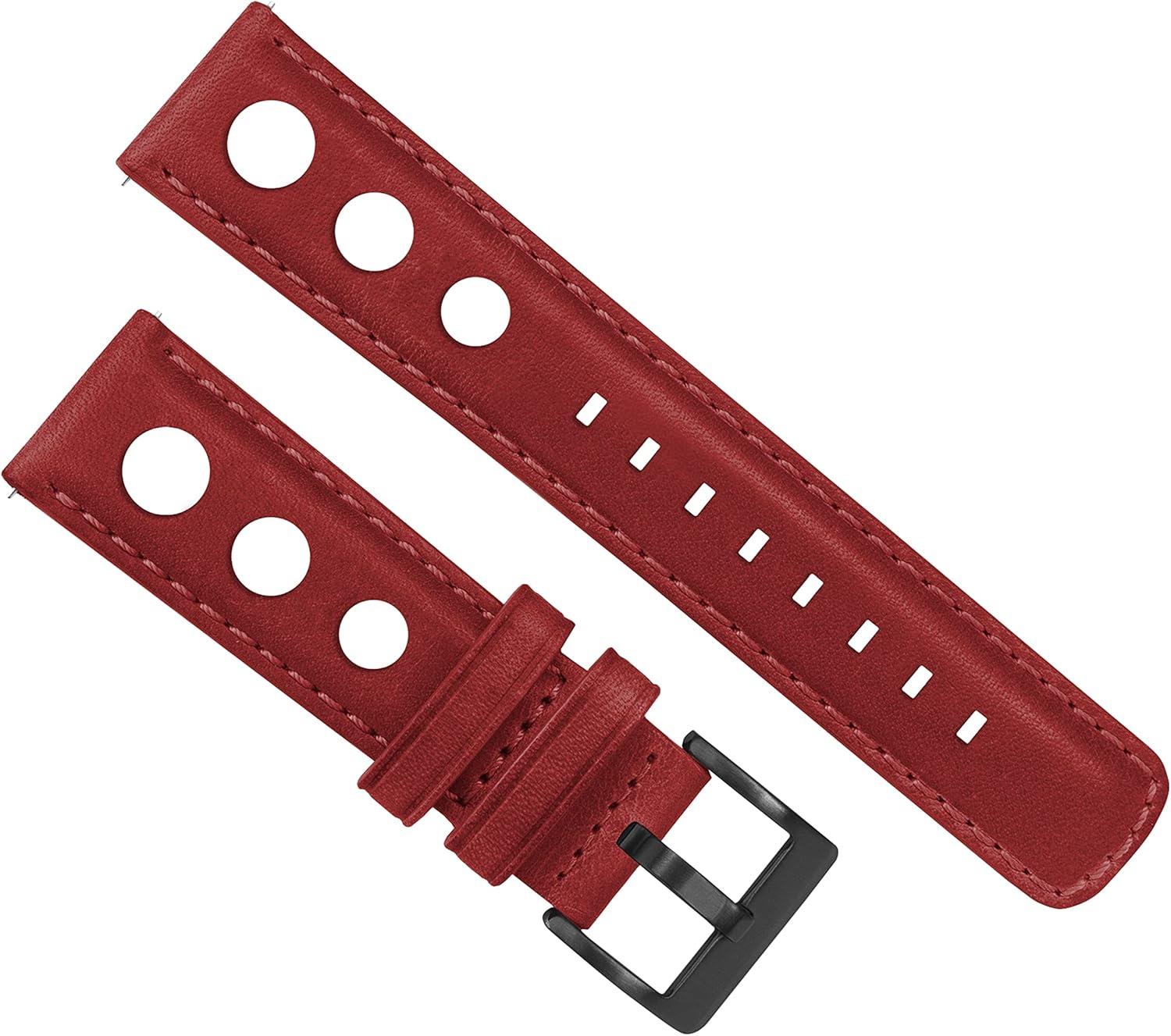 Barton Racing & Rally Horween Leather Straps with Integrated Quick Release Spring Bars - Standard Length fits Wrists 5" to 8"-18mm, 19mm, 20mm, 21mm, 22mm, 23mm & 24mm Watch Bands - Choose Strap Color & Width(Crimson Red (Rally Style) - Black Buckle)
