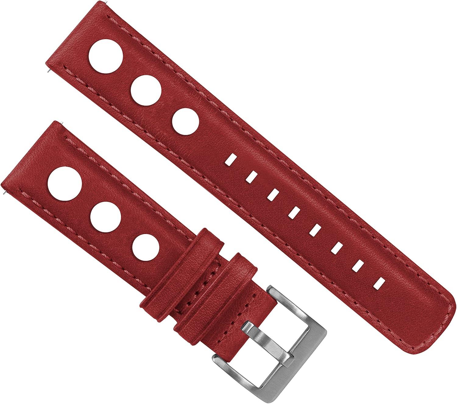 Barton Racing & Rally Horween Leather Straps with Integrated Quick Release Spring Bars - Standard Length fits Wrists 5" to 8"-18mm, 19mm, 20mm, 21mm, 22mm, 23mm & 24mm Watch Bands - Choose Strap Color & Width(Crimson Red (Rally Style) - Gunmetal Buckle)