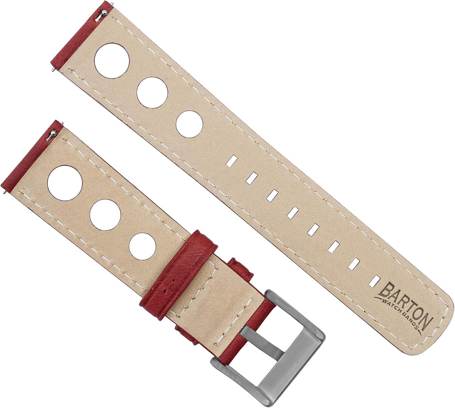 imageBarton Racing amp Rally Horween Leather Straps with Integrated Quick Release Spring Bars  Standard Length fits Wrists 5 to 818mm 19mm 20mm 21mm 22mm 23mm amp 24mm Watch Bands  Choose Strap Color amp WidthCrimson Red Rally Style  Gold Buckle