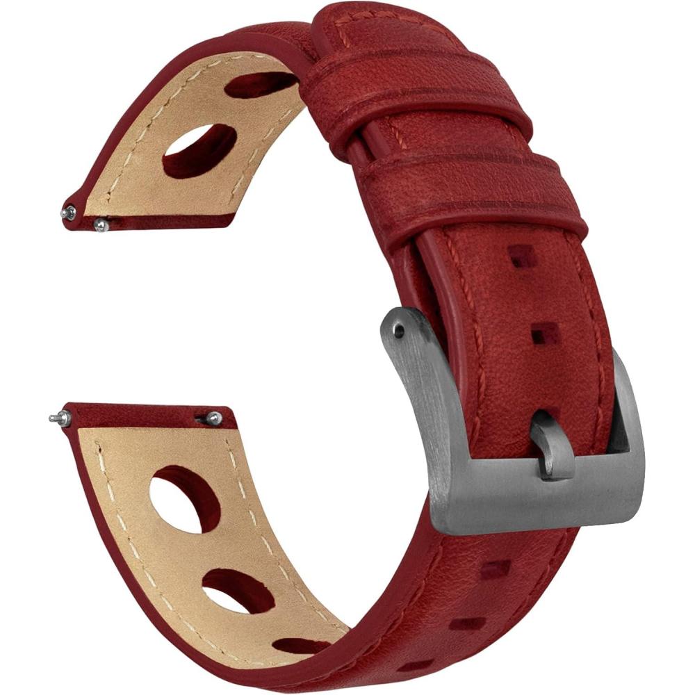 imageBarton Racing amp Rally Horween Leather Straps with Integrated Quick Release Spring Bars  Standard Length fits Wrists 5 to 818mm 19mm 20mm 21mm 22mm 23mm amp 24mm Watch Bands  Choose Strap Color amp WidthCrimson Red Rally Style  Gunmetal Buckle