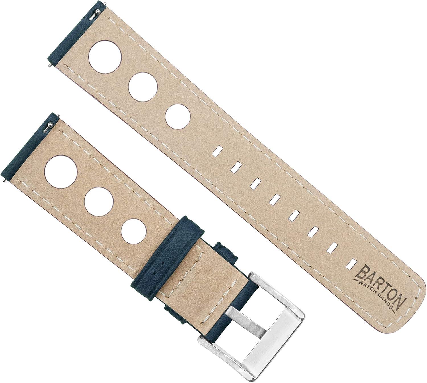 Barton Racing & Rally Horween Leather Straps with Integrated Quick Release Spring Bars – Standard Length fits Wrists 5″ to 8″-18mm, 19mm, 20mm, 21mm, 22mm, 23mm & 24mm Watch Bands – Choose Strap Color & Width(Navy Blue (Rally Style))