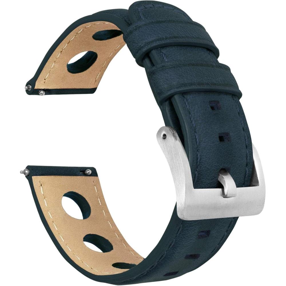imageBarton Racing ampamp Rally Horween Leather Straps with Integrated Quick Release Spring Bars  Standard Length fits Wrists 5quot to 8quot18mm 19mm 20mm 21mm 22mm 23mm ampamp 24mm Watch Bands  Choose Strap Color ampamp WidthNavy Blue Rally Style  Black Buckle