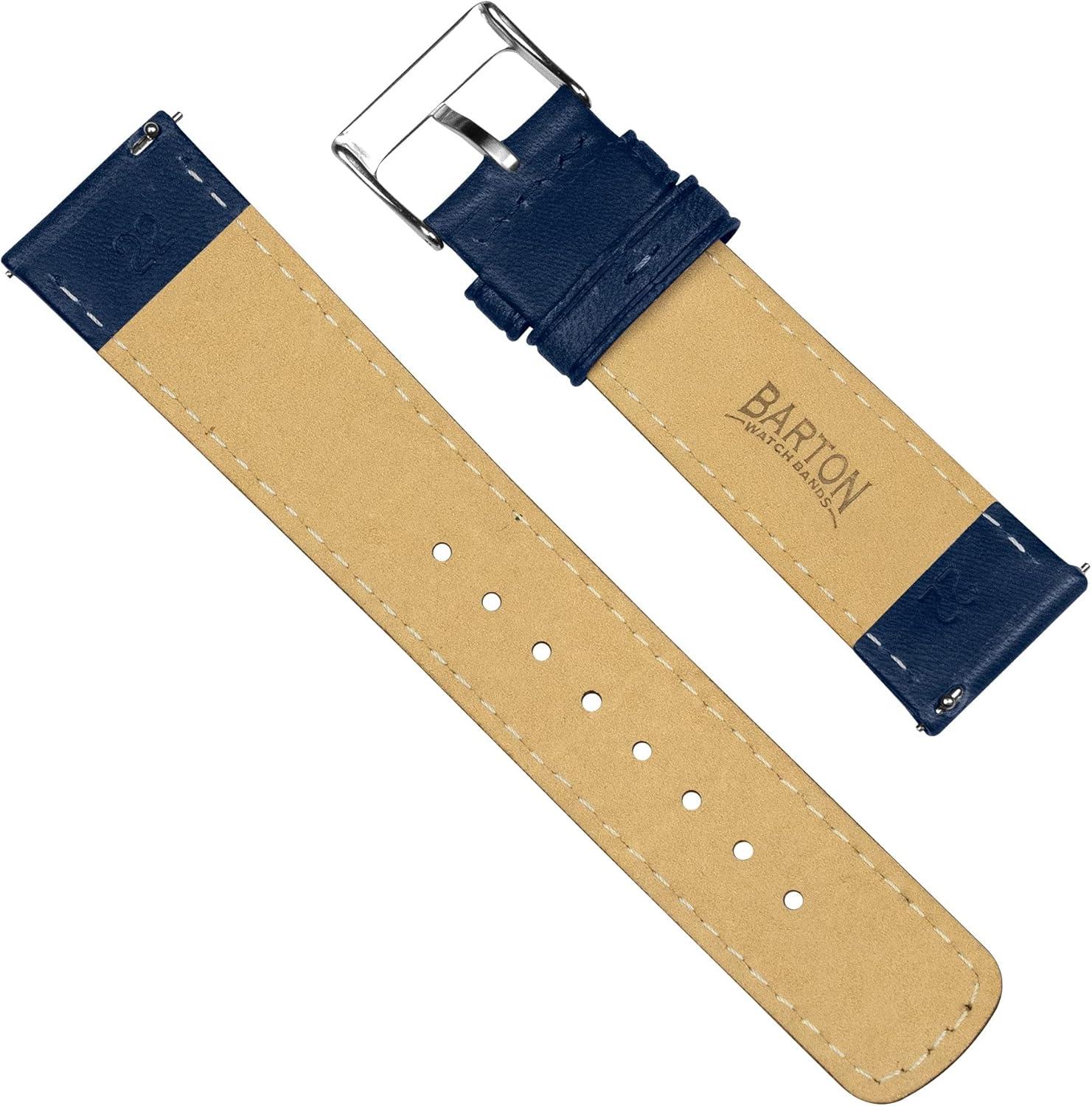 Barton Racing & Rally Horween Leather Straps with Integrated Quick Release Spring Bars - Standard Length fits Wrists 5" to 8"-18mm, 19mm, 20mm, 21mm, 22mm, 23mm & 24mm Watch Bands - Choose Strap Color & Width(Navy Blue (Classic Style))