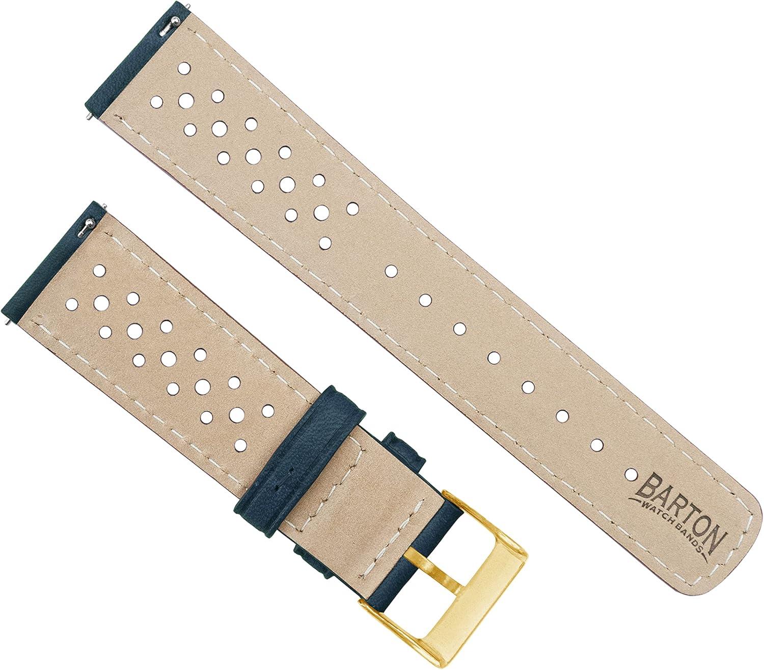 Barton Racing & Rally Horween Leather Straps with Integrated Quick Release Spring Bars - Standard Length fits Wrists 5" to 8"-18mm, 19mm, 20mm, 21mm, 22mm, 23mm & 24mm Watch Bands - Choose Strap Color & Width(Navy Blue (Racing Style) - Gold Buckle)