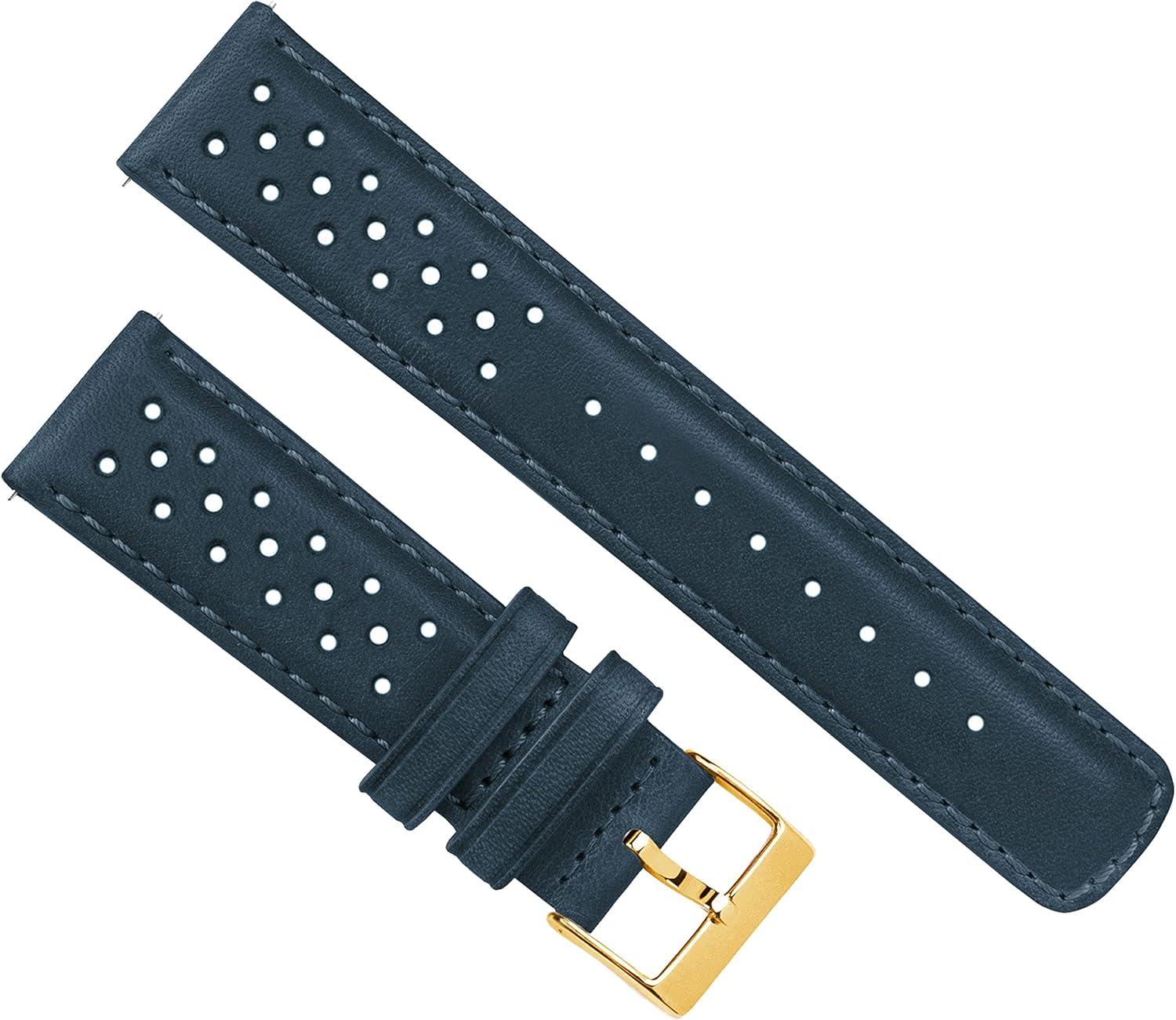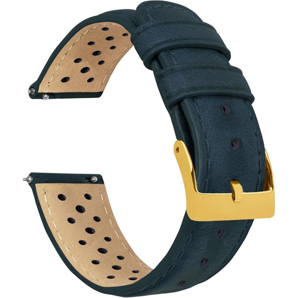 imageBarton Racing amp Rally Horween Leather Straps with Integrated Quick Release Spring Bars  Standard Length fits Wrists 5 to 818mm 19mm 20mm 21mm 22mm 23mm amp 24mm Watch Bands  Choose Strap Color amp WidthNavy Blue Racing Style  Gold Buckle