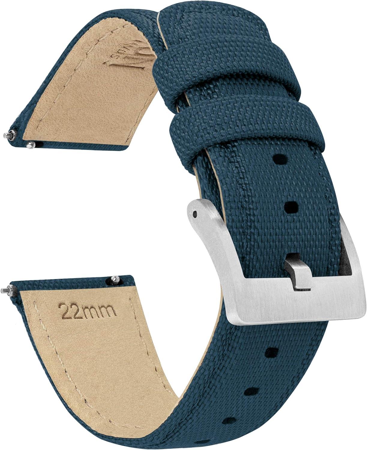 imageBARTON Sailcloth Quick Release Premium Nylon Weave Choice of Color and Width 18mm 19mm 20mm 21mm 22mm 23mm 24mmNavy Blue