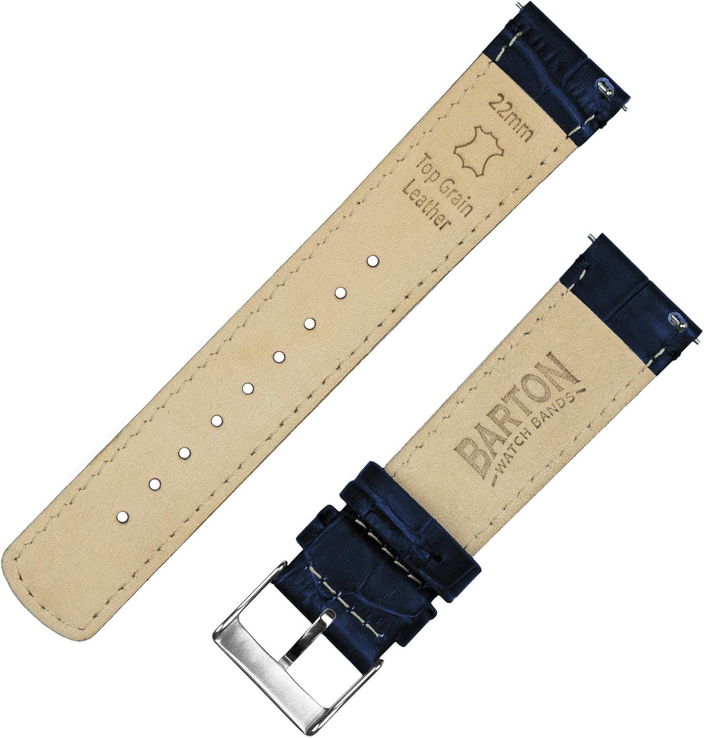 BARTON WATCH BANDS, 12mm Navy Blue – Alligator Grain – Quick Release Leather Watch Bands