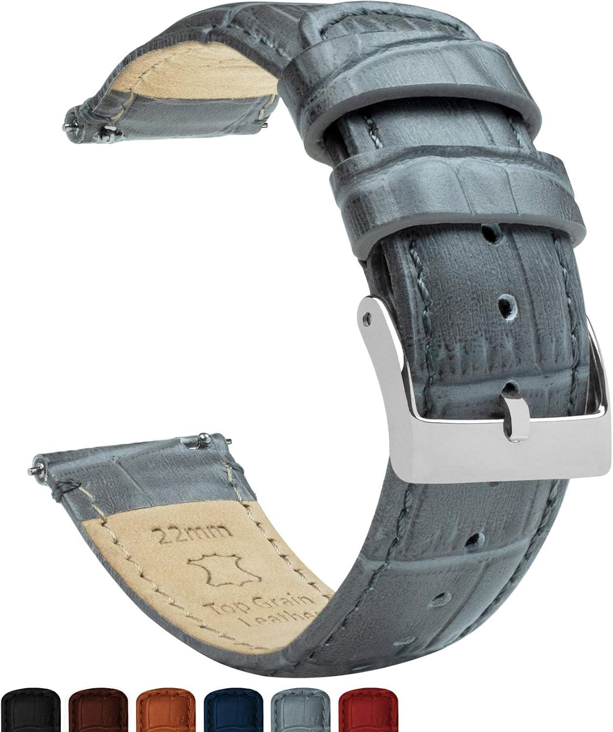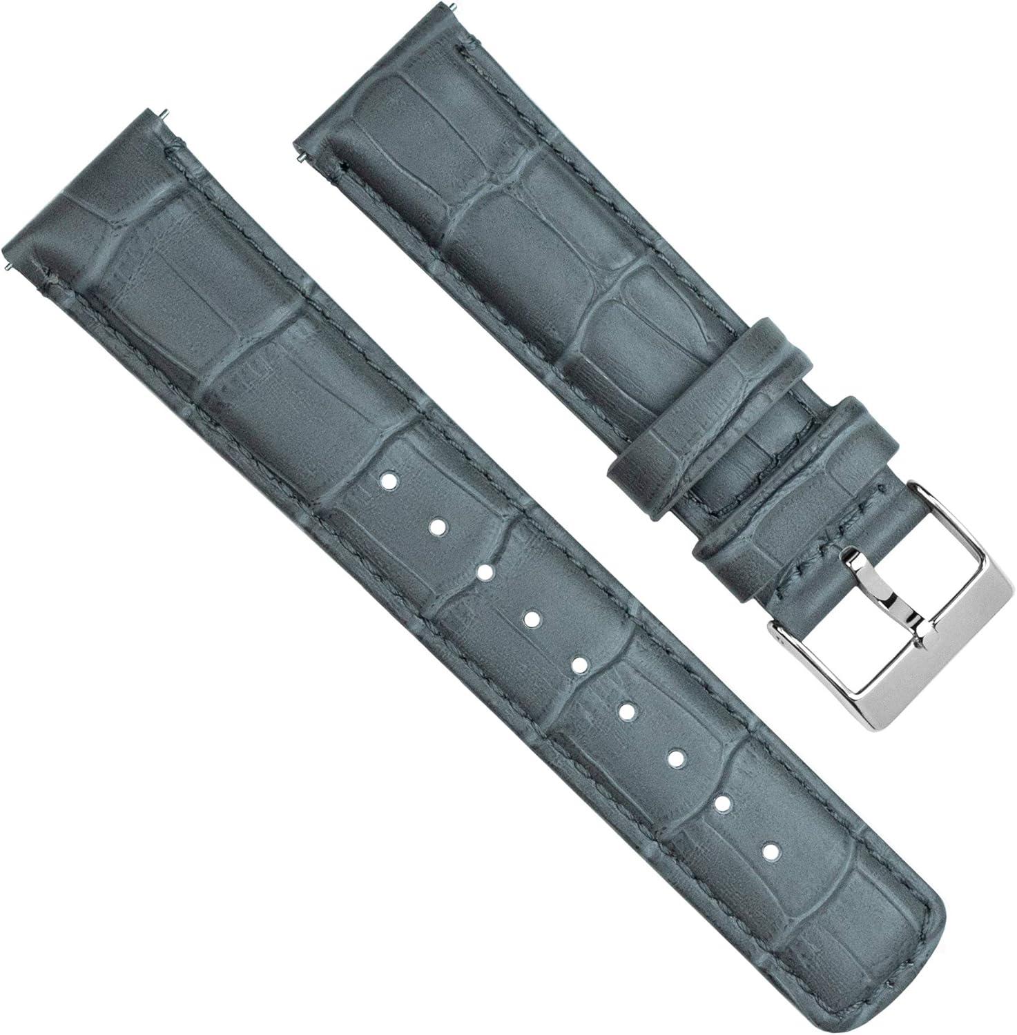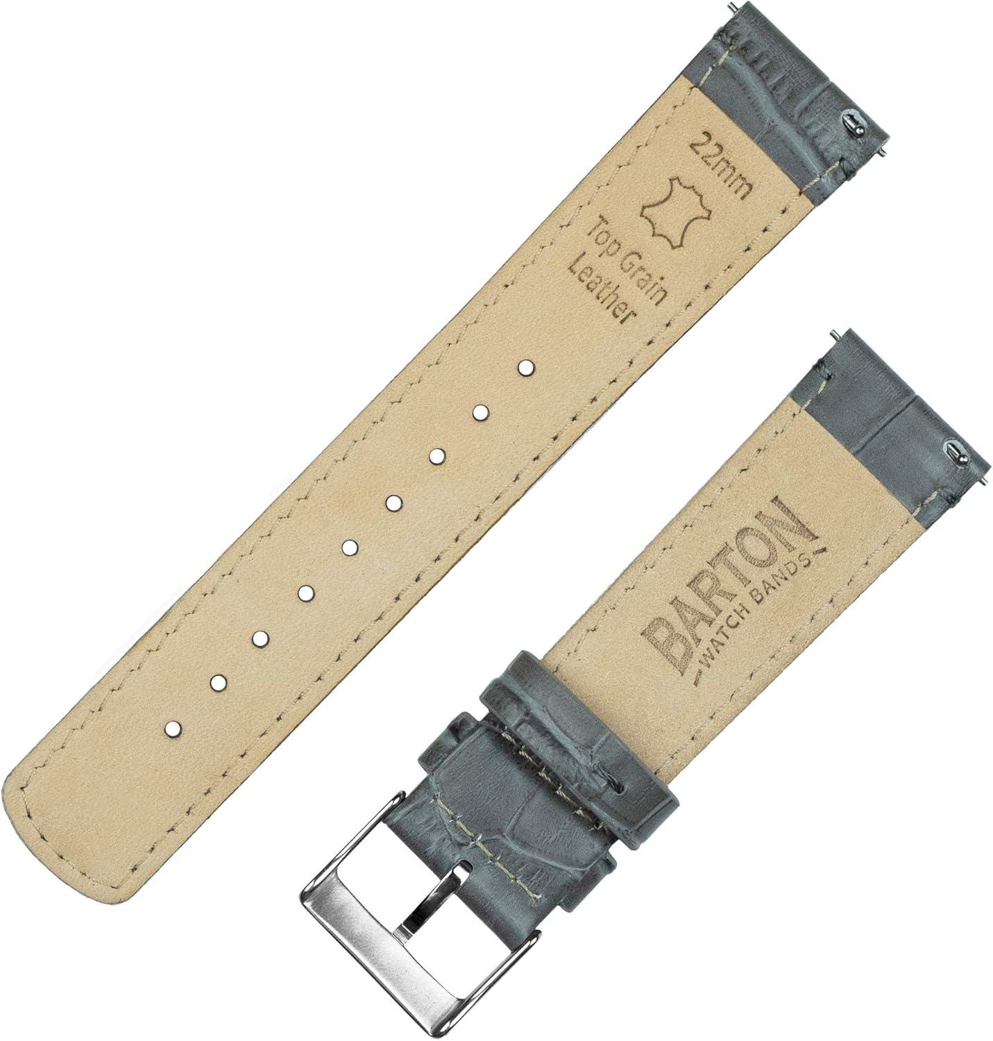 BARTON WATCH BANDS, 22mm Smoke Grey – Long – Alligator Grain – Quick Release Leather Watch Bands