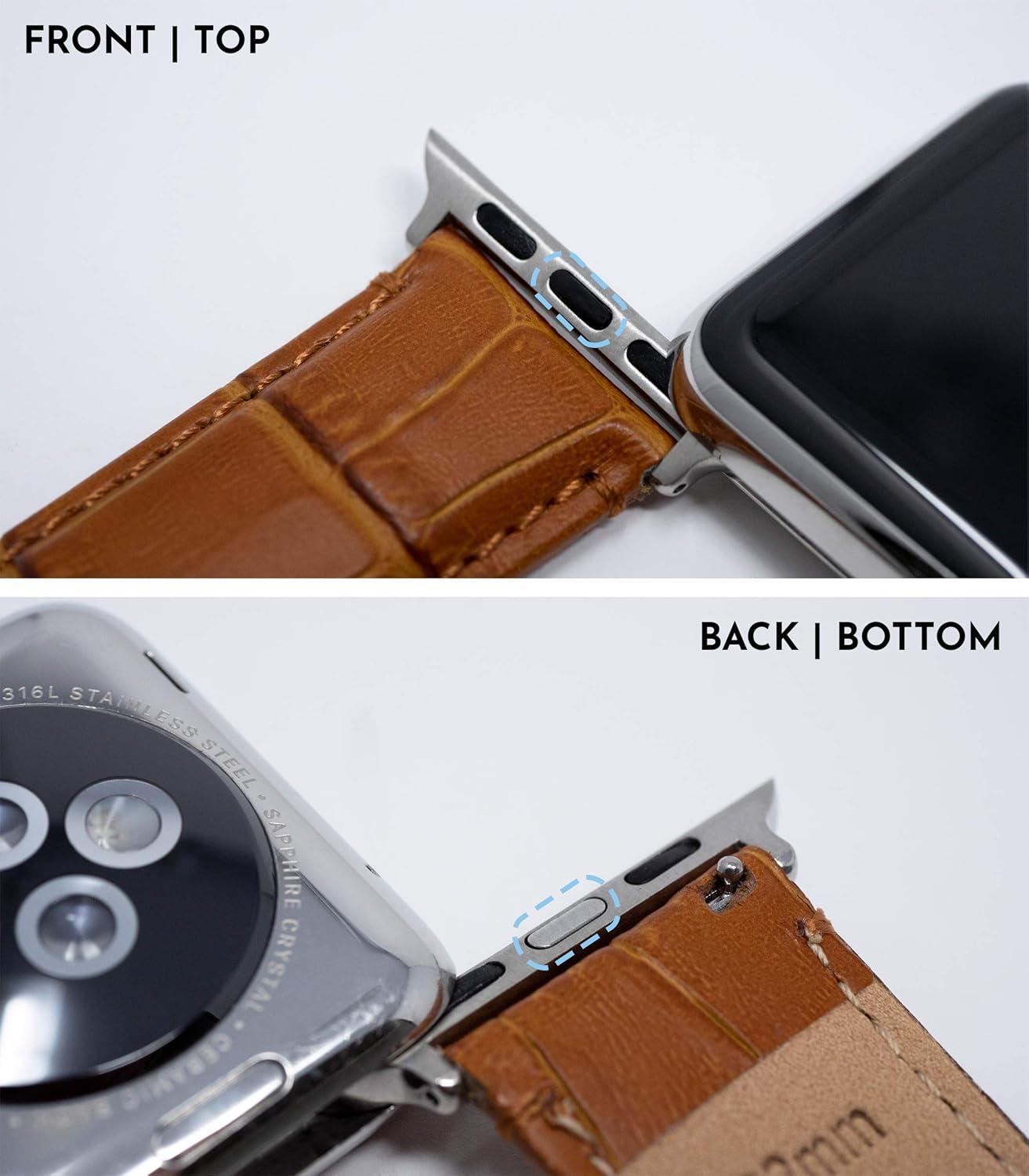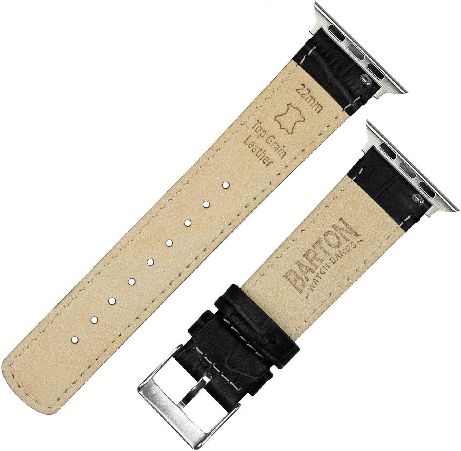BARTON Leather Apple Watch Bands are a perfect fit for either the Small (38mm/40mm/41mm) or Large (42mm/44mm/45mm/49mm) Apple Watch, Watch 2, Watch 3, Watch 4, Watch 5, Watch 6, Watch 7, Watch 8, Watch SE & Watch Ultra. These 22mm straps are fabricated from top grain leather and a 316L surgical grade stainless buckle. These Apple Watch Bands are stylish and sturdy.