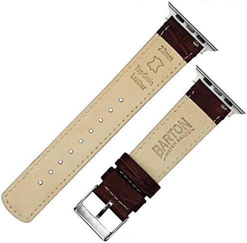 BARTON WATCH BANDS – Alligator Grain Leather Watch Bands Compatible with Apple Watch Models – 1, 2, 3, 4, 5, 6, 7, 8, 9, 10, SE, Ultra & Ultra 2(Coffee Brown & Stainless Hardware)