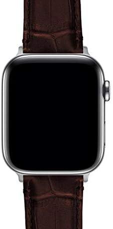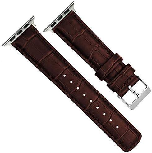 BARTON WATCH BANDS - Alligator Grain Leather Watch Bands Compatible with Apple Watch Models - 1, 2, 3, 4, 5, 6, 7, 8, 9, 10, SE, Ultra & Ultra 2(Coffee Brown & Stainless Hardware)