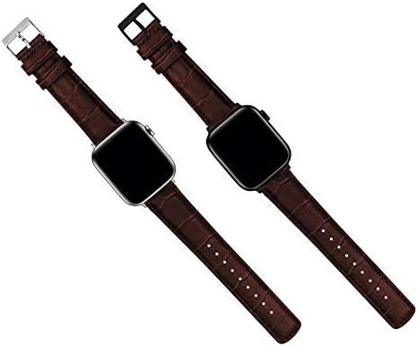 BARTON WATCH BANDS – Alligator Grain Leather Watch Bands Compatible with Apple Watch Models – 1, 2, 3, 4, 5, 6, 7, 8, 9, 10, SE, Ultra & Ultra 2(Coffee Brown & Black Hardware)