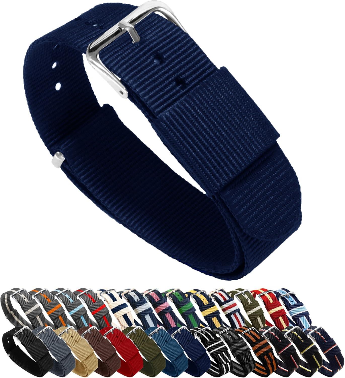 BARTON WATCH BANDS – Ballistic Nylon NATO® Style Straps – Choice of Color, Length & Width (18mm, 20mm, 22mm or 24mm)(Navy Blue)