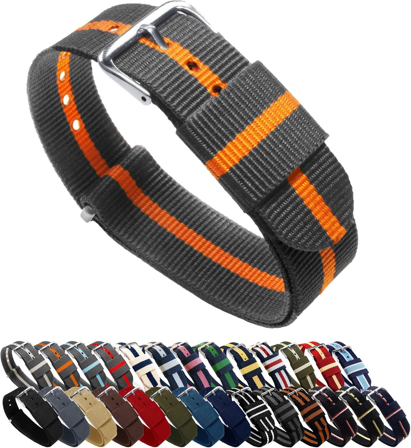 imageBARTON WATCH BANDS  Ballistic Nylon NATO Style Straps  Choice of Color Length ampamp Width 18mm 20mm 22mm or 24mmSmokePumpkin
