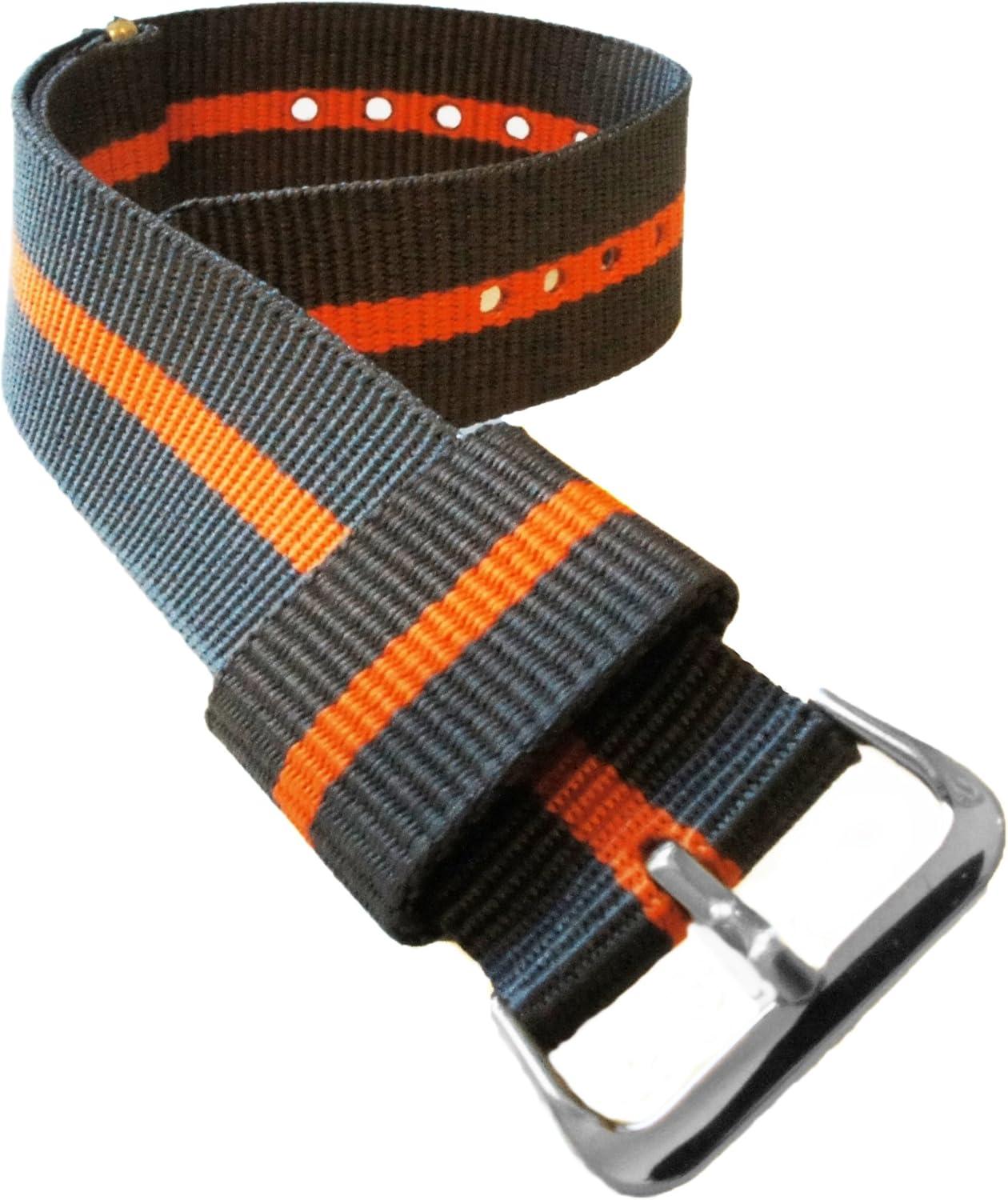 BARTON WATCH BANDS - Ballistic Nylon NATO® Style Straps - Choice of Color, Length & Width (18mm, 20mm, 22mm or 24mm)(Smoke/Pumpkin)