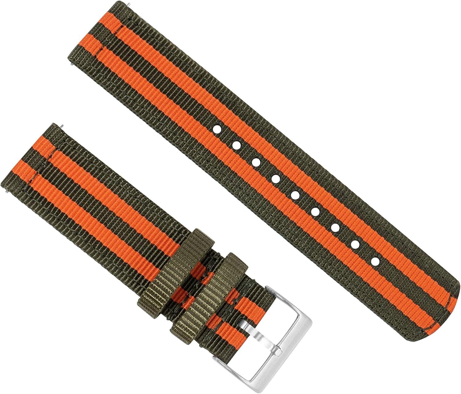 imageBARTON WATCH BANDS  Ballistic Nylon Twopiece NATO Style Straps  Choice of Color ampamp Width 18mm 20mm 22mmArmy Green  Orange