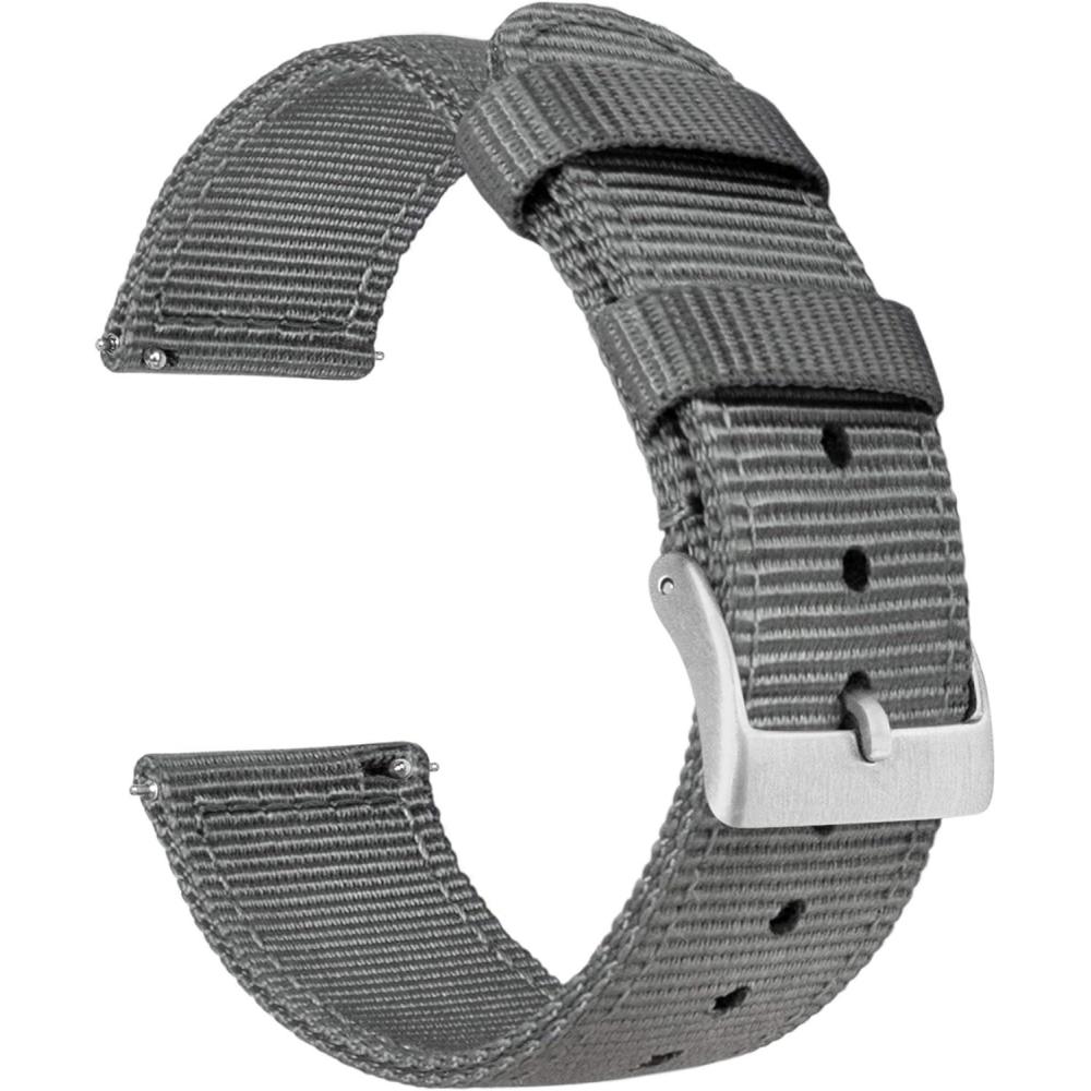 BARTON WATCH BANDS – Ballistic Nylon Two-piece NATO® Style Straps – Choice of Color & Width (18mm, 20mm, 22mm)(Smoke Grey)