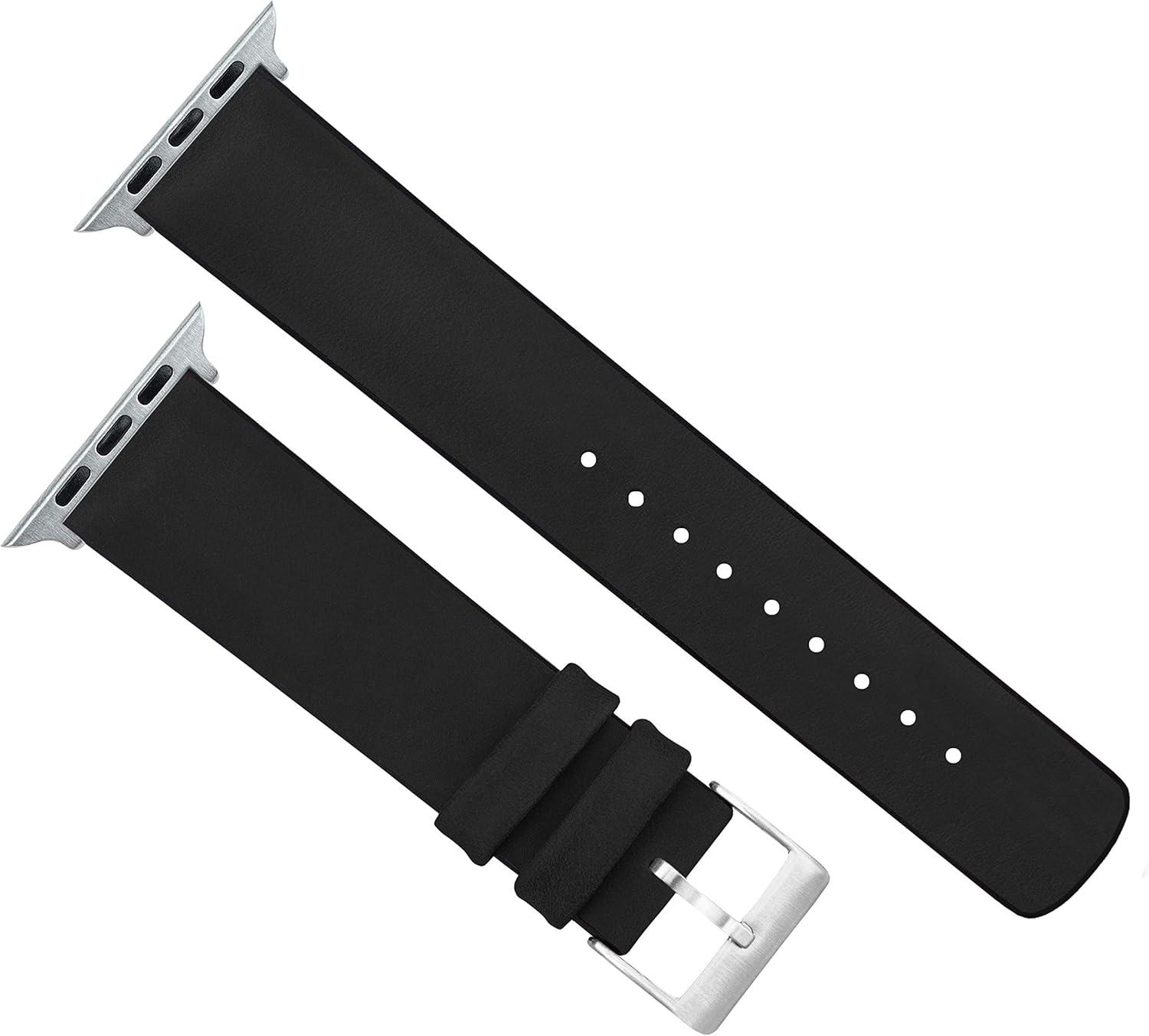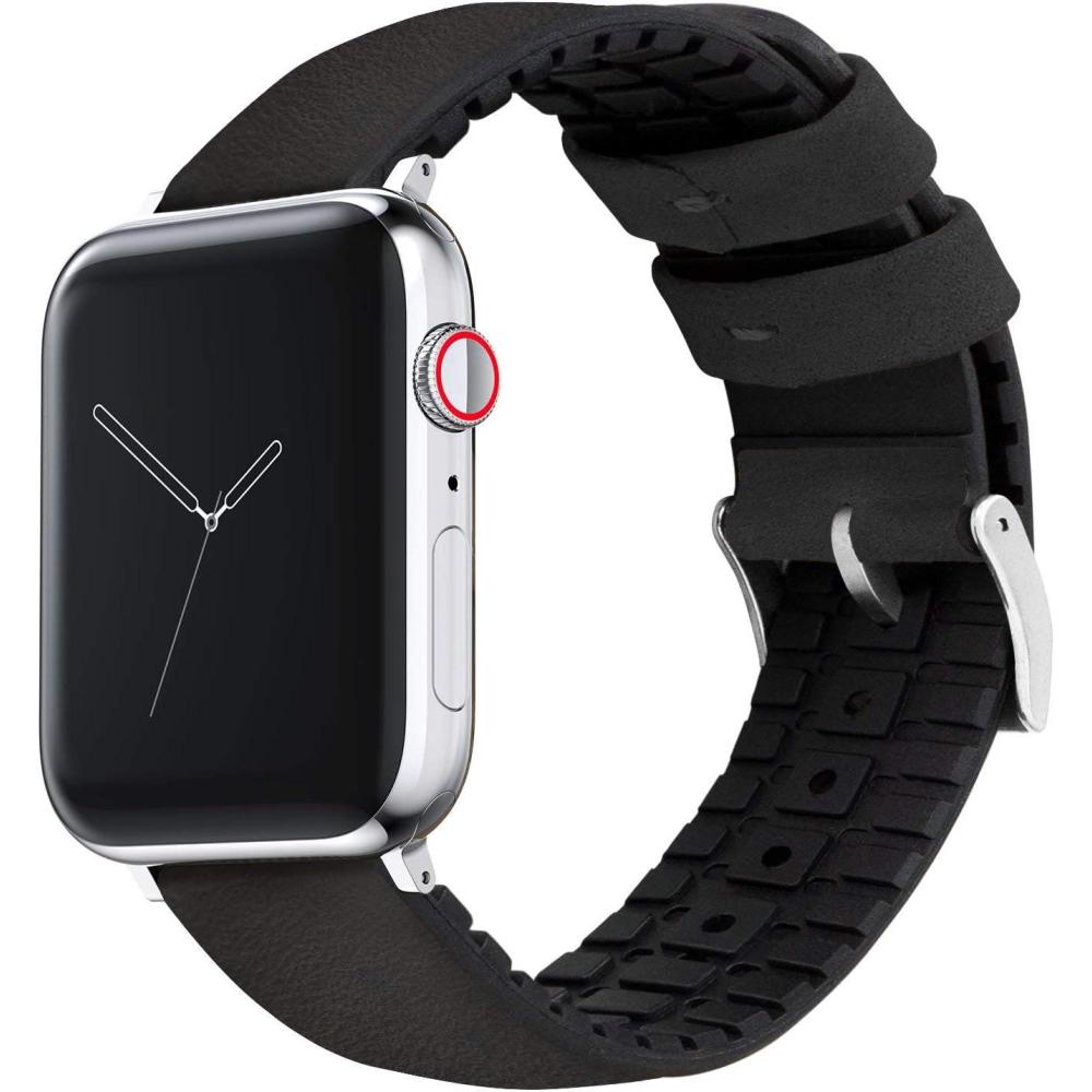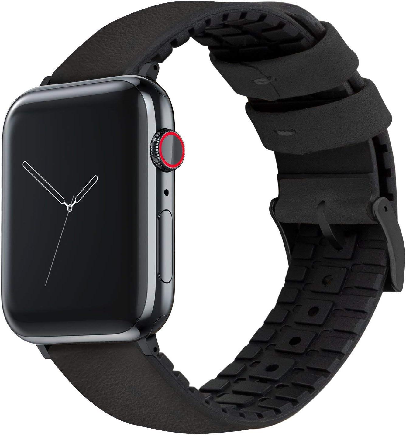 imageBARTON WATCH BANDS Black Leather and Rubber Hybrid  Choose Color ampamp Size  Compatible with All Apple Watches Ultra SE 8 7 6 5 4 3 2 1  38mm 40mm 41mm 42mm 44mm 45mm 49mmBlack Leather Black Buckle