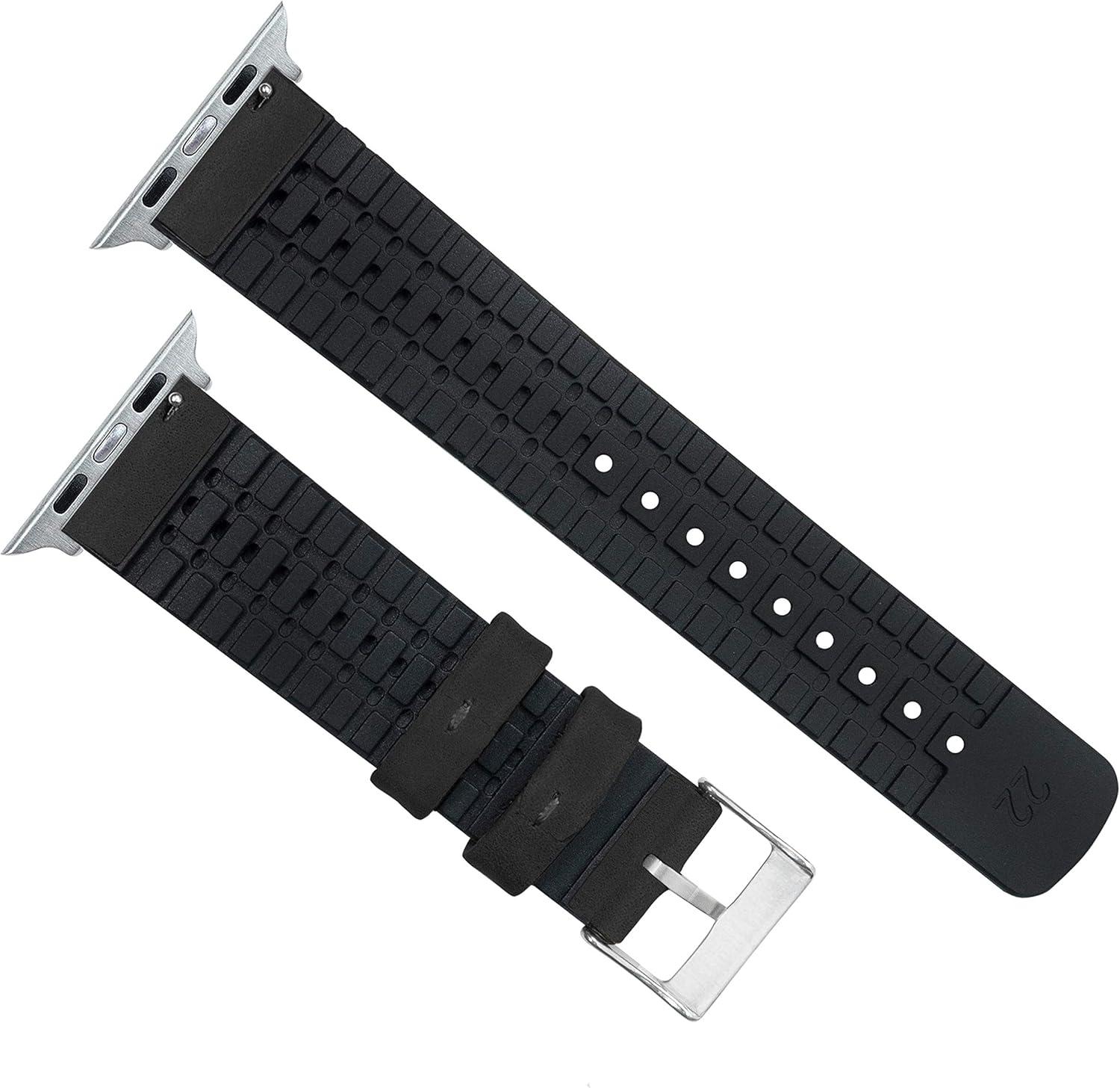 BARTON WATCH BANDS- Black Leather and Rubber Hybrid - Choose Color & Size - Compatible with All Apple Watches (Ultra, SE, 8, 7, 6, 5, 4, 3, 2, 1) - 38mm, 40mm, 41mm, 42mm, 44mm, 45mm, 49mm(Black Leather (Black Buckle))
